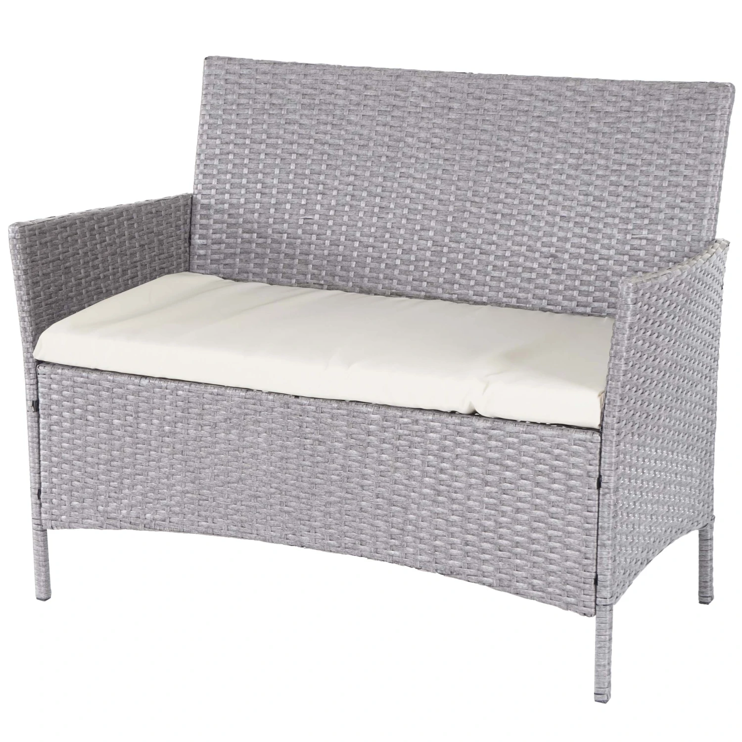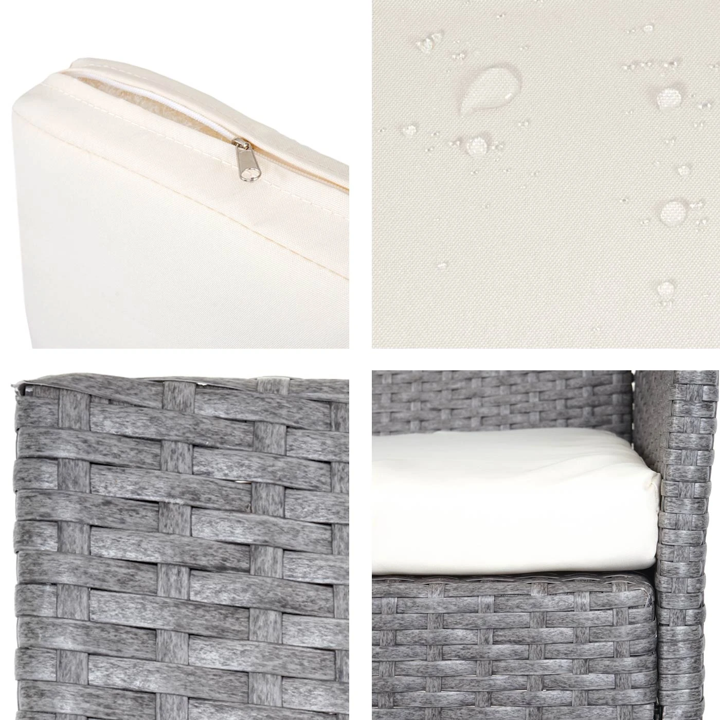 – Lieferumfang: 2x Sessel, 1x Bank, Sitzkissen, 1x Tisch mit Glasplatte