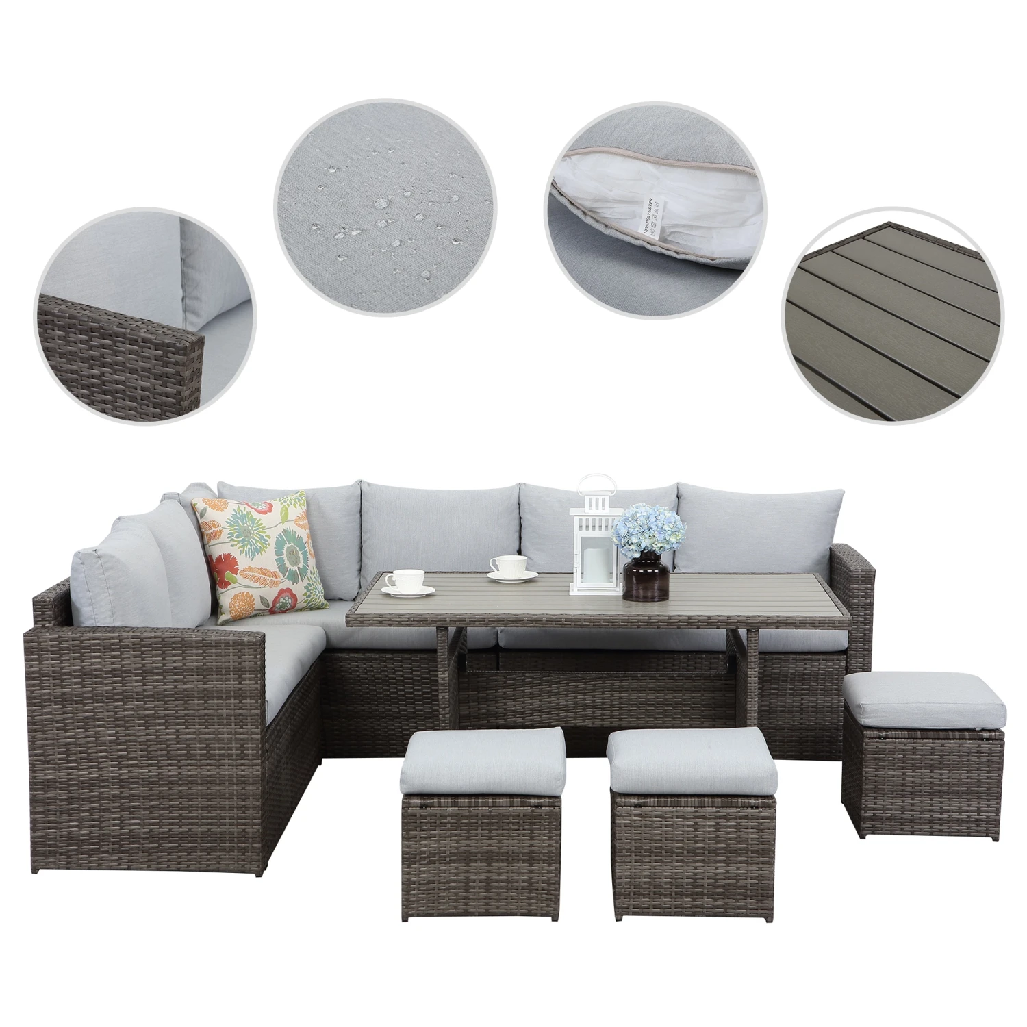 - praktisch und dekorativ zugleich: Das schlichte Design und die elegante Farbe sind die perfekte Dekoration für den Garten. Diese Gartenmöbel-Set kann Ihr Sofa, Ruhesessel und Esstisch sein.