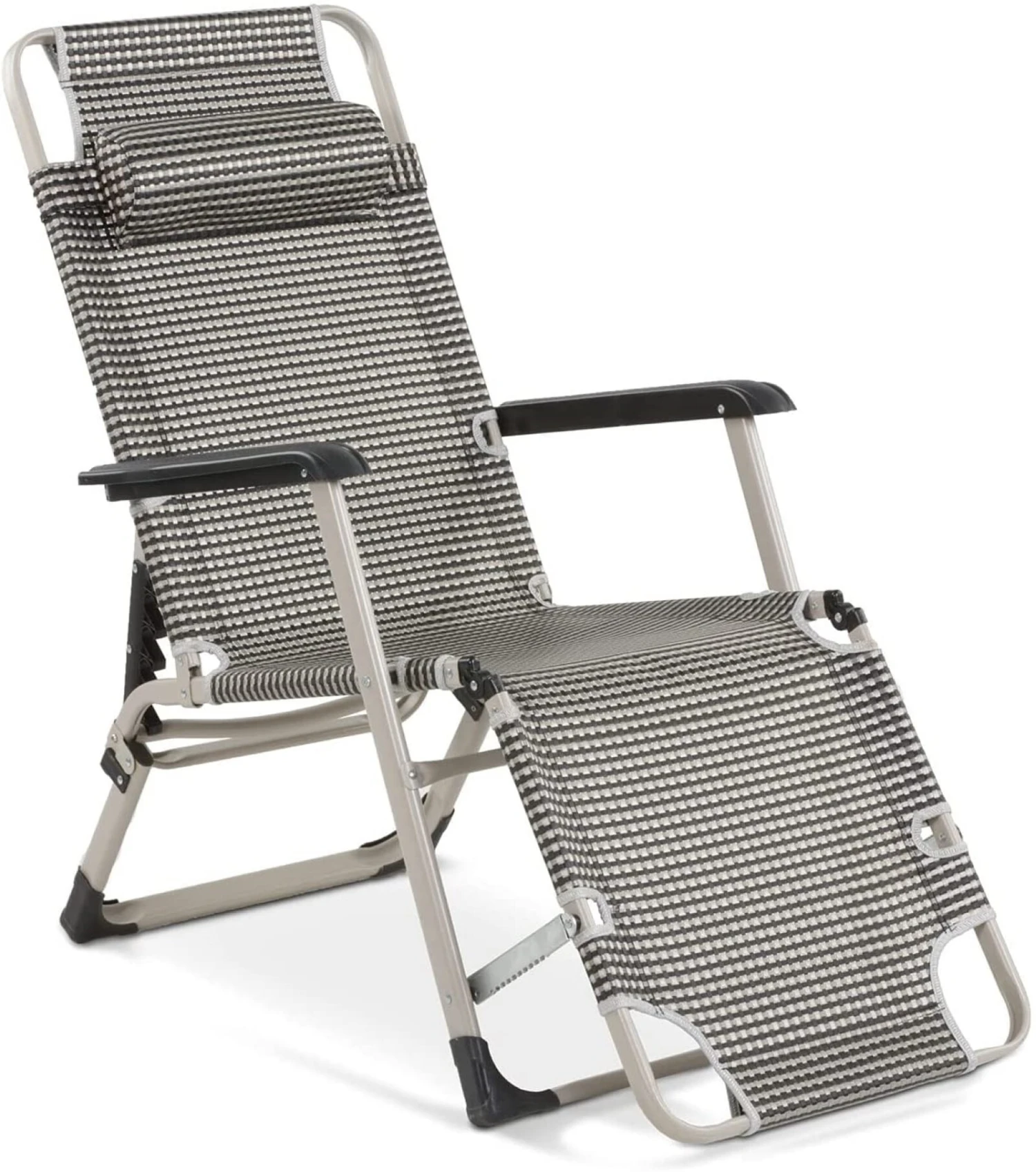 - material: Rahmen: Pulverbeschichtetes Stahlrohr, Bezug: Strapazierfähiges, atmungsaktives Textilene-Gewebe, Armlehnen: Kunststoff