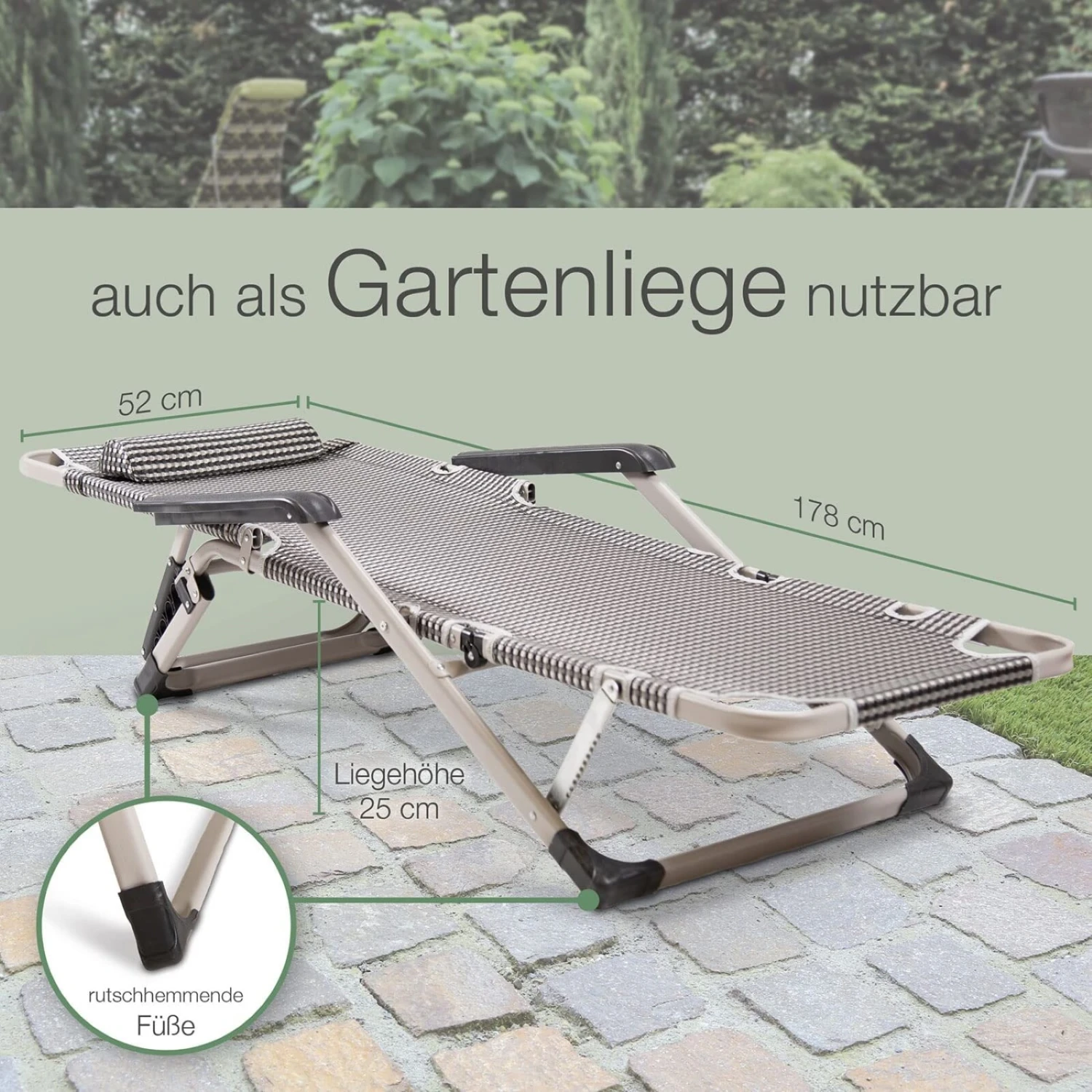 - SCHNELL ZUSAMMENGEKLAPPT: Im Nu ist der Liegestuhl zusammengeklappt und kann einfach transportiert und verstaut werden
