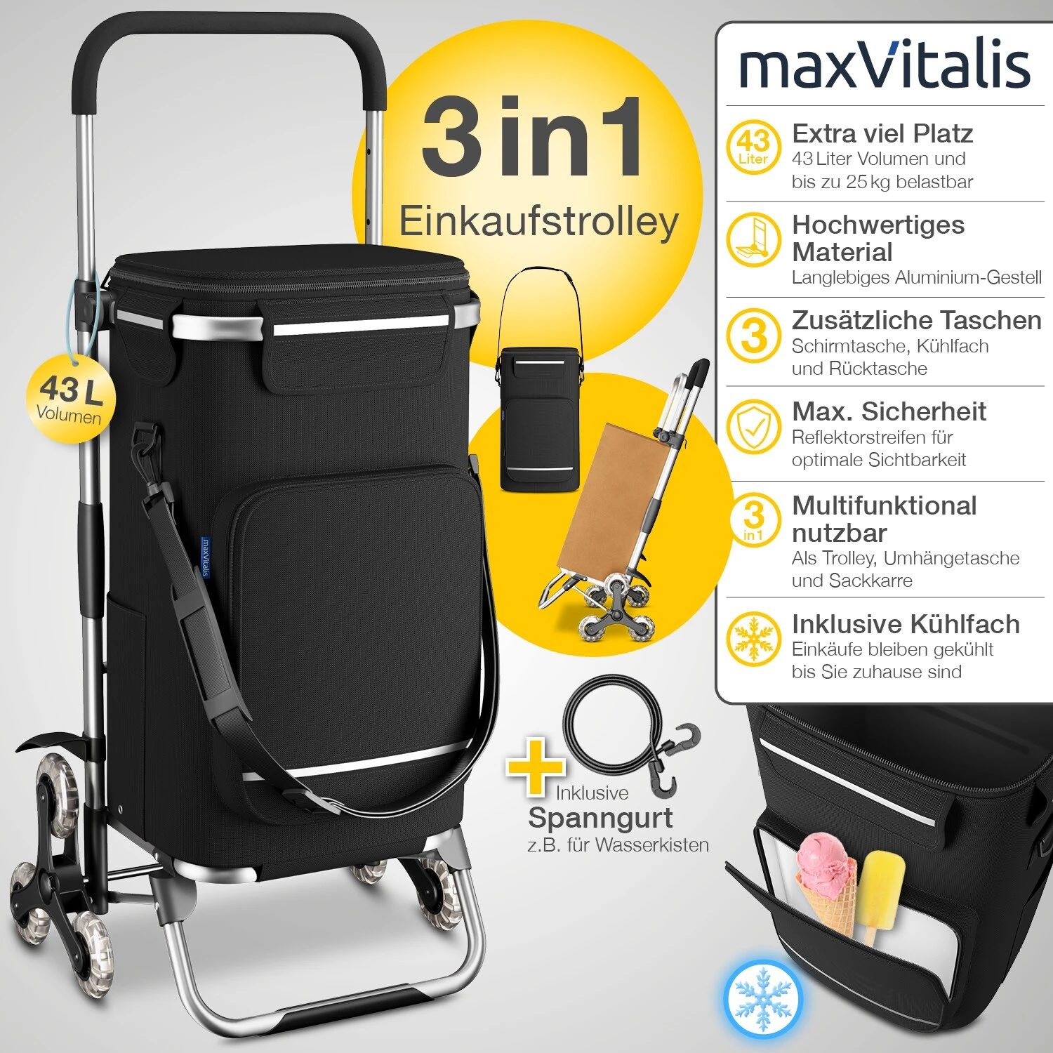 Die Qualitätsmerkmale des Treppensteiger-Einkaufsrollers »Premium« im Überblick: