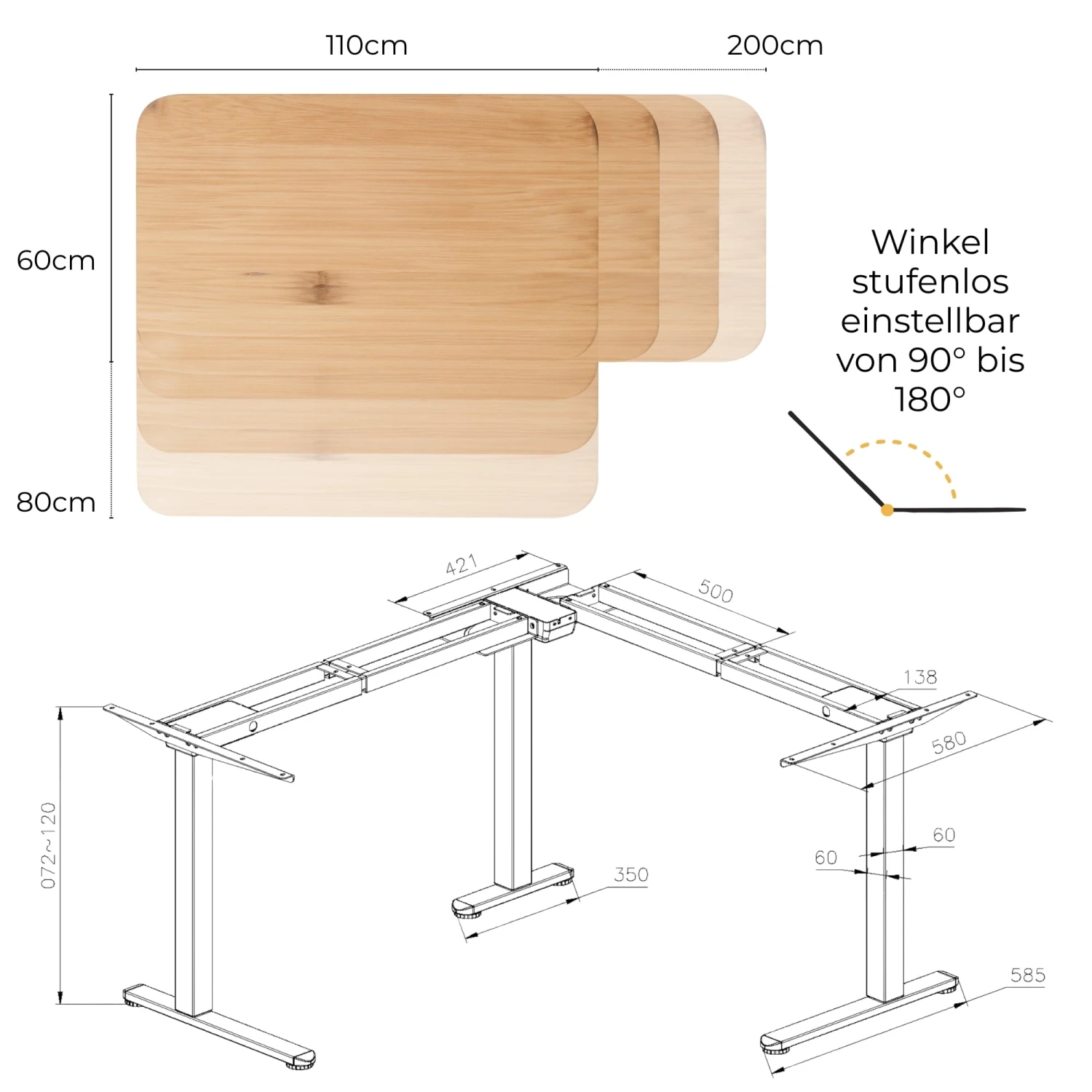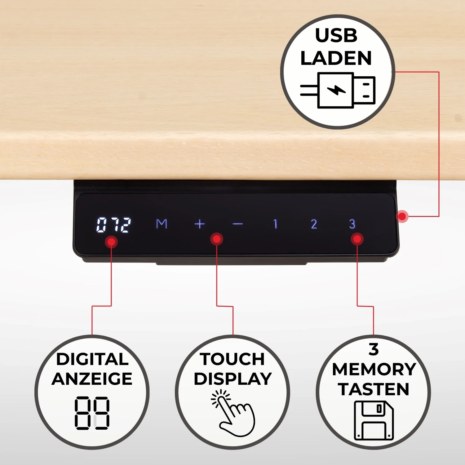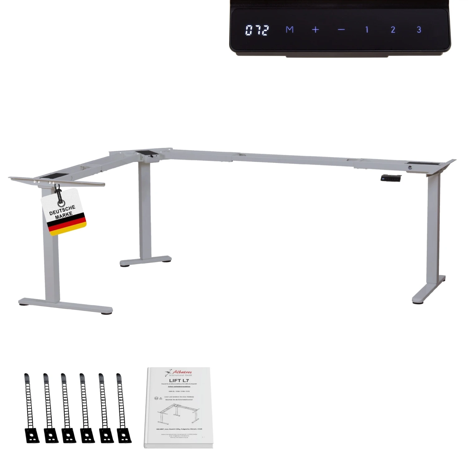- NÜTZLICHE FEATURES: Das Winkeltisch-Gestell besitzt ein Digitaldisplay und eine Speicherfunktion von bis zu 3 präferierten Höhen. Außerdem sind ein Anti-Kollisionssensor und Kindersicherung verbaut.