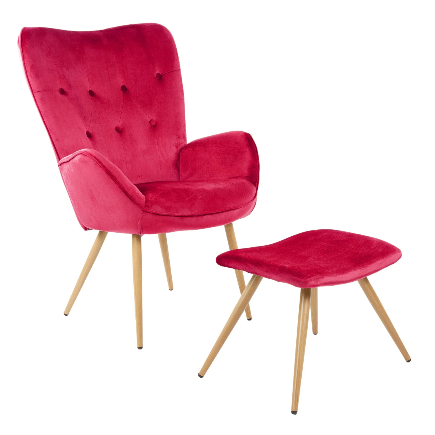 Albatros Ohrensessel mit Hocker YORK, Samt Bezug, bequem gepolstert, Fernsehsessel, Polstersessel