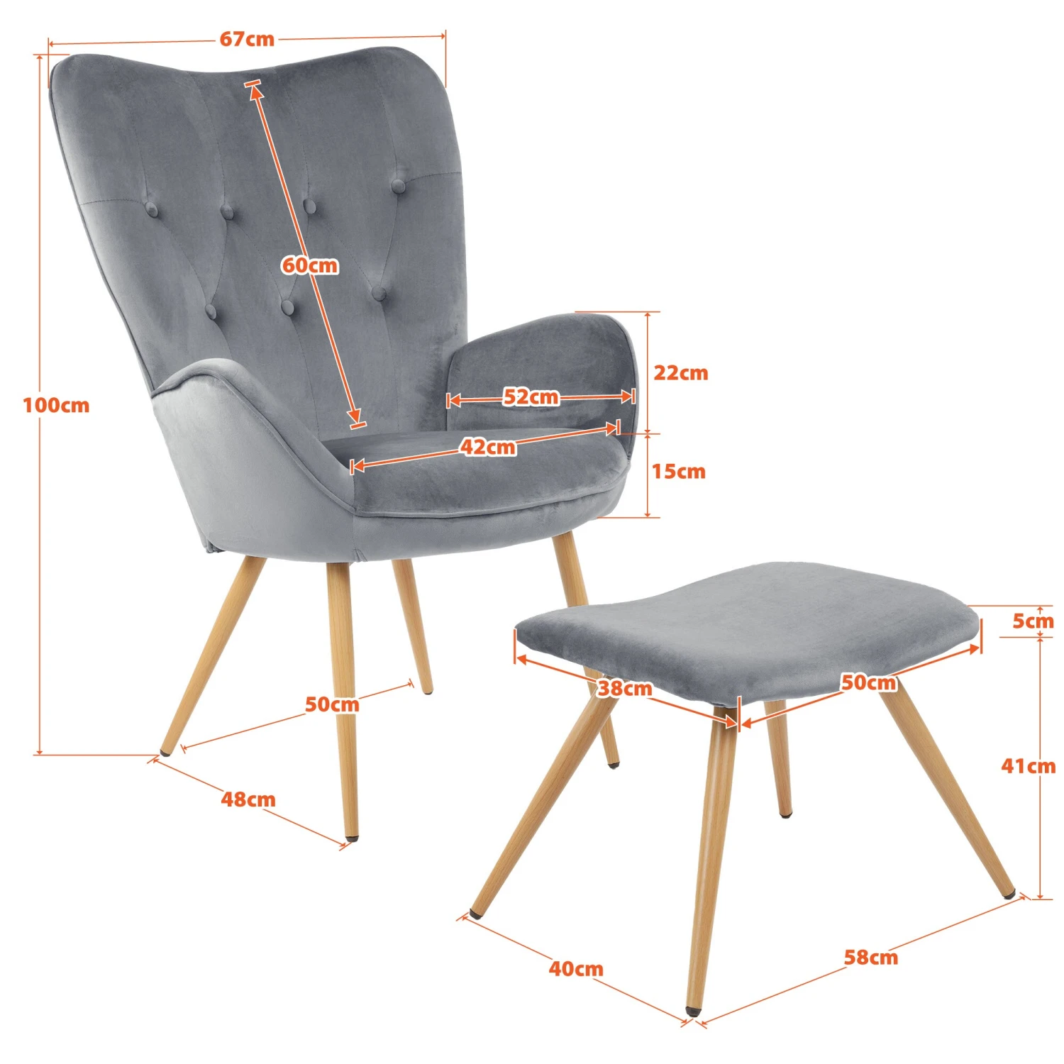 - ABMESSUNGEN: 100cm x 67cm x 65cm (HxBxT), Sitzhöhe: 45cm. Maße Hocker: 40cm x 58cm x 40cm (HxBxT). Lieferumfang: Ohrensessel YORK, Kunststoffgleiter, Montageanleitung.