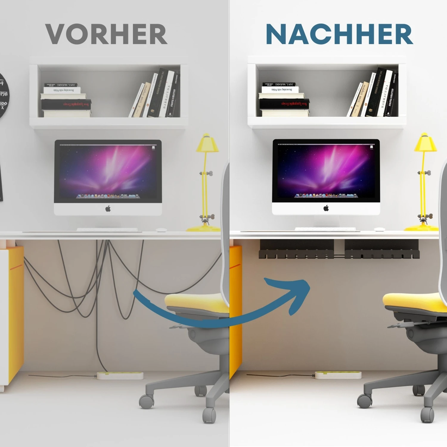 - ORDNUNG & SICHERHEIT AM ARBEITSPLATZ: Das Kabelmanagement-System schafft im Handumdrehen Ordnung an deinem Schreibtisch. Egal ob im Büro, Home Office oder beim Gaming – mehr Sauberkeit und weniger Stolperfallen und Chaos.