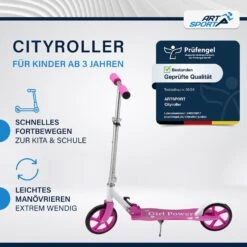 ArtSport Scooter Cityroller Big Wheel 205mm Räder Klappbar Höhenverstellbar Kinder-Roller Ab 3 Jahre