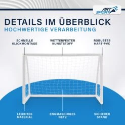 ArtSport Fußballtor 180 X 120 Cm Mit Netz Für Garten In Weiß, Inklusive Praktischer Tragetasche