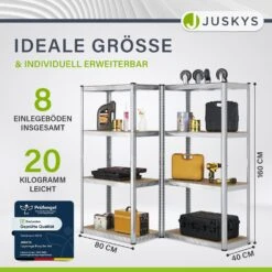 Juskys Lagerregal Easy 2er Set – Metall Schwerlastregal 160x80x40 Cm, 8 Böden, 640 Kg, Verzinkt
