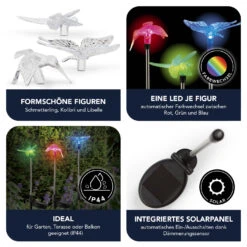 MAXXMEE Solar-Stableuchten LED 3er-Set Schmetterling, Kolibri Und Libelle 1,2V Silber/schwarz