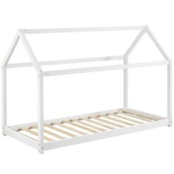 Juskys Kinderbett Carlotta 90 X 200 Cm Matratze, Lattenrost& Dach | Holz | Hausbett In Weiß