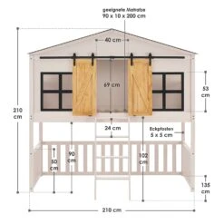 Juskys Kinderbett Farmhaus 90×200 Cm Mit Treppe, Dach & Lattenrost – Hausbett Rosa Für Kinder