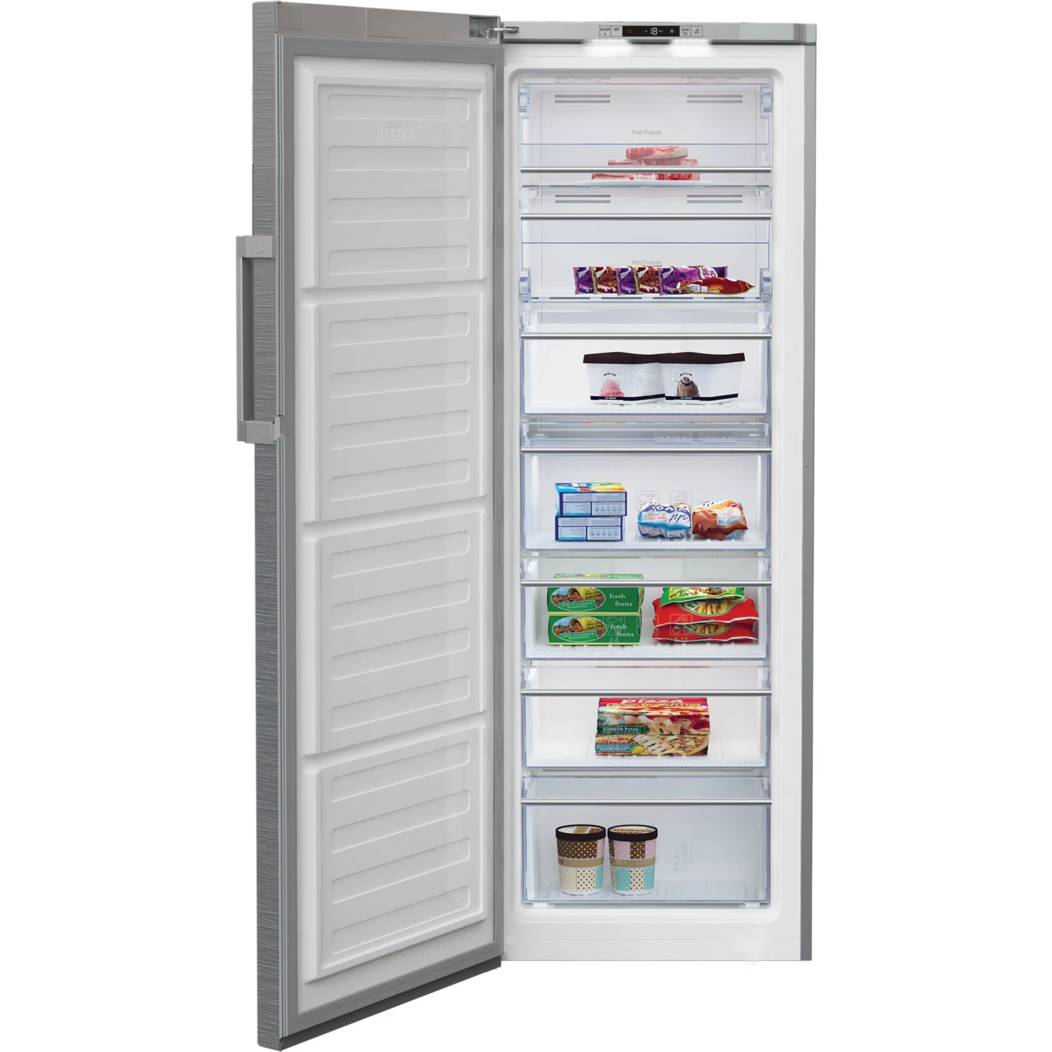 Der Gefrierschrank BEKO RFNE290T45XPN stellt einen Gesamtnutzinhalt von 256 Litern zur Verfügung und kann auch in unbeheizten Räumen bis -15°C Umgebungstemperatur problemlos genutzt werden. Ausgestattet ist er mit fünf Gefrierschubladen und zwei Gefrierfächern mit Klappe. Durch die Supergefrierschaltung bleiben Lebensmittel aufgrund eines schnelleren Einfriervorgangs länger frisch und dank der NoFrost-Technologie muss der Gefrierschrank nie wieder abgetaut werden, was Zeit und Geld spart. Innerhalb von 24 Stunden friert der RFNE290T45XPN bis zu 20 Kilogramm Lebensmittel ein. Darüber hinaus sorgt die Innenraumbeleuchtung für eine gute Übersicht und die Umluftkühlung für eine gleichmäßige Temperaturverteilung. Mit einem Stromverbrauch von 240 kWh im Jahr ist der RFNE290E43WN in die Energieeffizienzklasse E eingestuft.