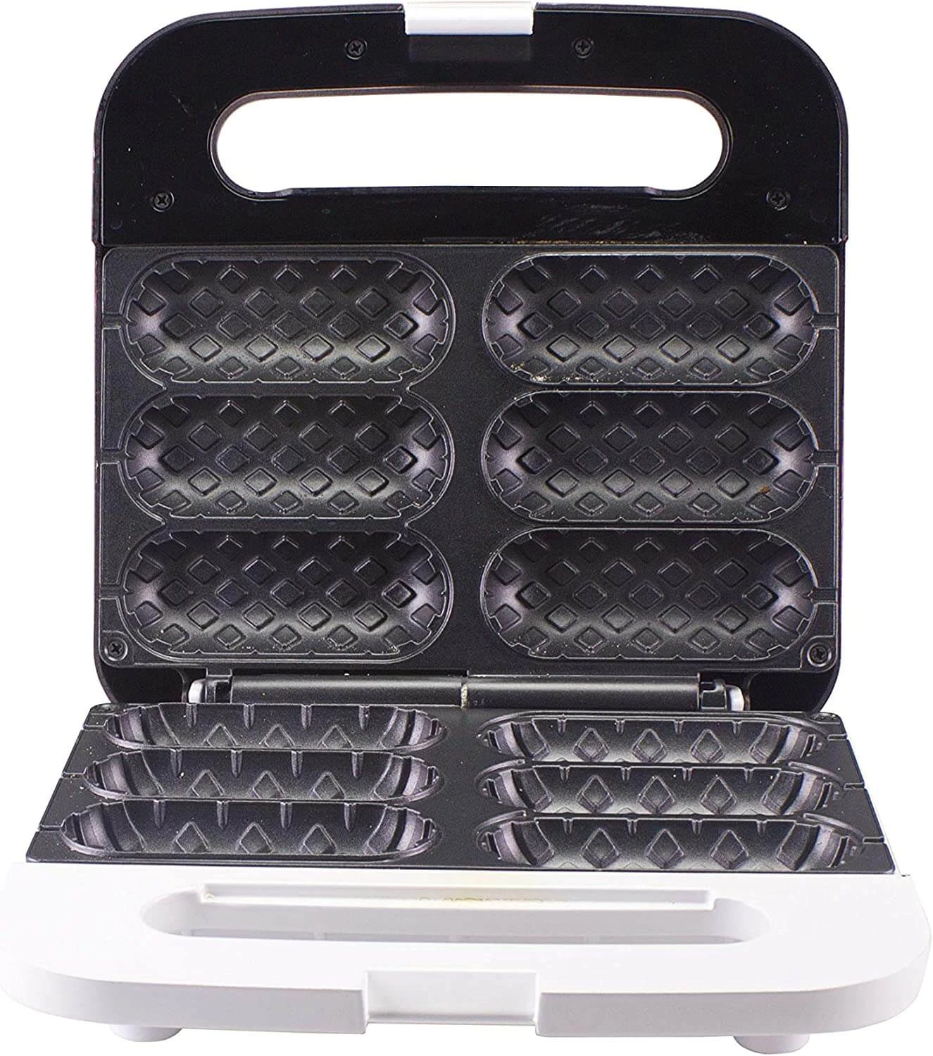 Das Beper P101CUD100 Waffeleisen entkräftet alle Ängste und Mythen, welche man mit der Herstellung von Waffeln und vergleichbaren Köstlichkeiten verbinden kann.Mit dem Beper P101CUD100 Waffeleisen brauchen Sie sich nicht mehr mit Ölspritzer, der daraus resultierenden Brandgefahr oder dem Aufräumen und Entsorgen des benutzten Fettes befassen.Zur Herstellung der Waffeln heizen Sie einfach das Waffeleisen vor und geben dann den hergestellten Teig in die Rillen im Inneren des Geräts. Nach Schließen des Verschlusses, können Sie sich innerhalb weniger Minuten über 6 knusprige und heiße Waffeln freuen und das, ohne das Haus verlassen zu müssen.
