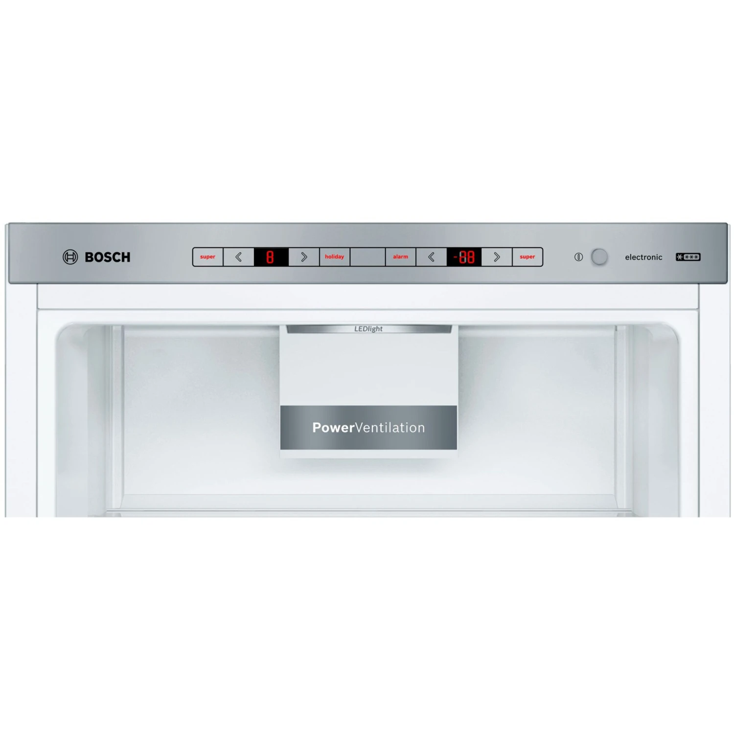 Die Kühl-/Gefrierkombination Bosch KGE364LCA ist mit einem Gesamtnutzinhalt von 308 Litern ideal für den mittelgroßen Haushalt geeignet. Im 214 Liter umfassende Kühlbereich haben frische Lebensmittel auf vier Abstellflächen aus Sicherheitsglas, davon zwei höhenverstell- und drei ausziehbar (EasyAccess-Shelf), in einer VitaFresh Obst-/Gemüseschublade und einer VitaFresh 0°C Schublade sowie in drei Türfächern jede Menge Platz um übersichtlich gelagert zu werden. Wenn man die SuperKühlen-Funktion vor dem Einkaufen aktiviert, wird die Temperatur kurzzeitig abgesenkt, damit die frischen Einkäufe bei der richtigen Temperatur eingelagert werden können. Der Gefrierbereich der KGE364LCA umfasst 94 Liter und ist mit drei transparenten Gefriergutschubladen, davon eine BigBox, ausgestattet, die dank ViarioZone flexibel ein gesetzt werden können. LowFrost reduziert die Eisbildung, sodass man den Gefrierraum deutlich seltener abtauen muss. Die Temperaturregelung der KGE364LCA erfolgt mittels TouchControl getrennt für Kühl- und Gefrierbereich und digital ablesbar. Mit einem Stromverbrauch von 161 kWh im Jahr ist die KGE364LCA in die Energieeffizienzklasse C eingestuft.