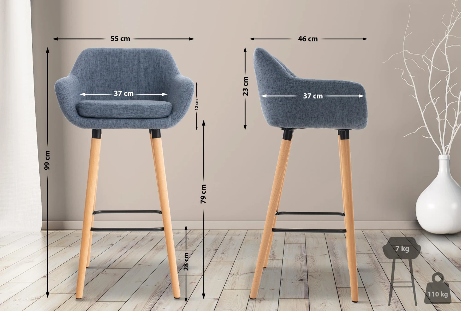 Sitzfläche (BxT): 37 x 37 cm
