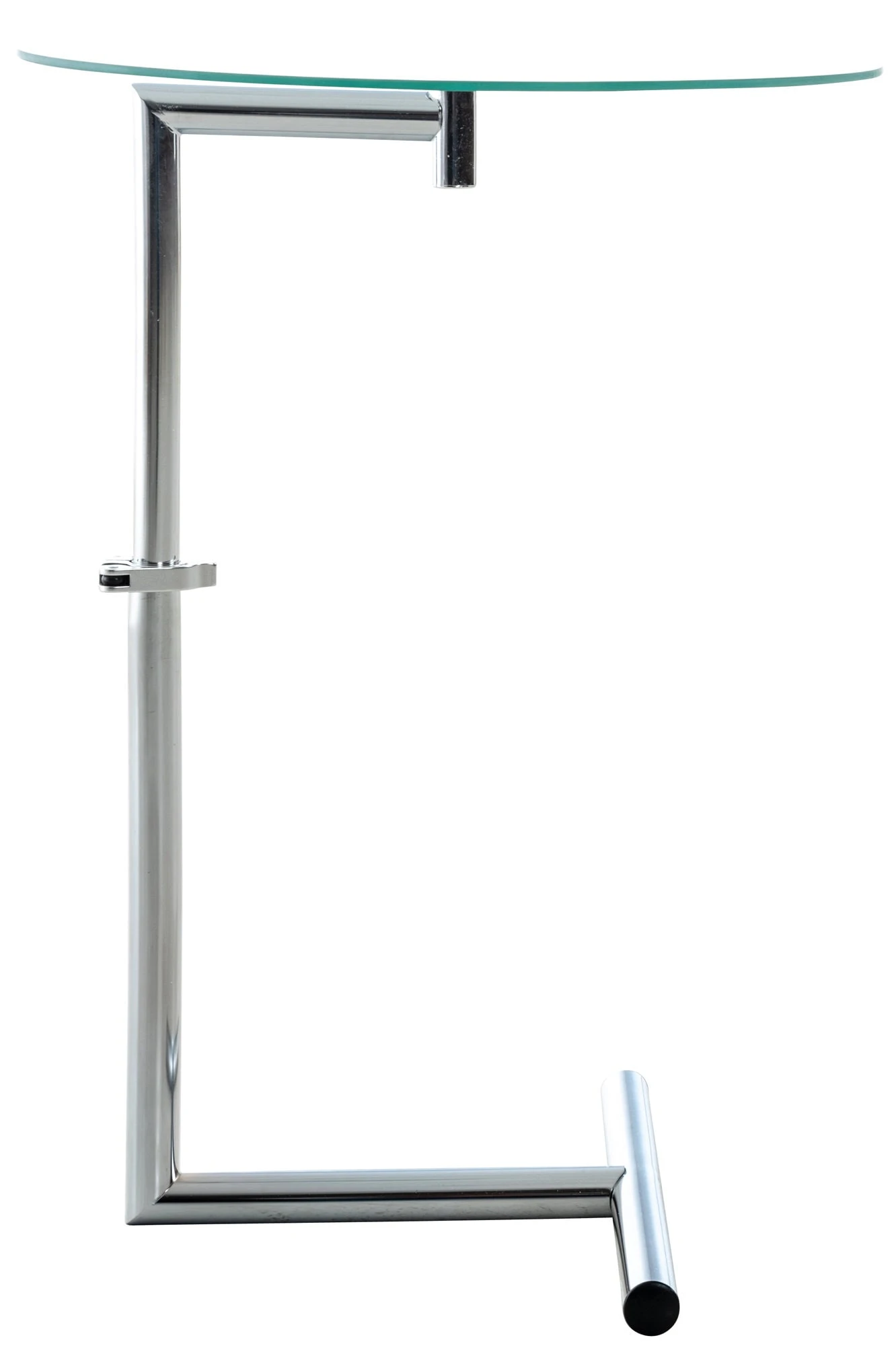Der runde Beistelltisch ist die perfekte Ergänzung, wenn der Feierabend auf dem heimischen Sofa noch ein wenig schöner werden soll. Die Tischplatte ist nicht starr, sondern lässt sich flexibel in der Höhe verstellen, sodass Snacks, Becher oder Zeitschriften immer griffbereit sind. Dank des schlanken und stabilen Gestells können Sie den Tisch ideal an dem Sofa platzieren oder auch am Bett als Nachttisch. Seine Form bietet unendlich viele Stellmöglichkeiten. Sein Gestell aus verchromtem Metall spielt erstklassig mit der Platte aus gehärtetem Klarglas zusammen – ein zeitlos schöner Hingucker in jeder Einrichtung!