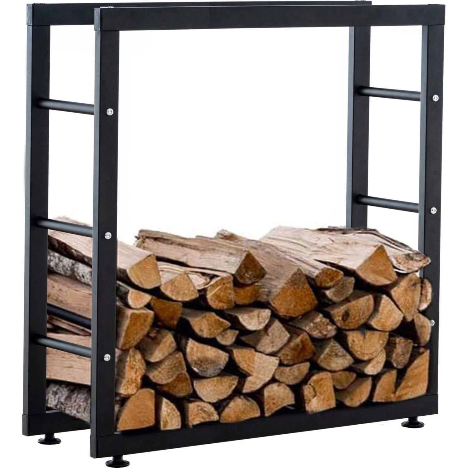 Besonders praktisch: Damit das Holz an den Seiten nicht herausfällt, befinden sich an jeder Seite 3 Querstreben. Sie sorgen auch für zusätzliche Stabilität des Kaminholzständers. Zusätzlich ist das Regal mit 4 Bodenschonern ausgestattet, die in der Höhe regulierbar sind, um Unebenheiten ausgleichen zu können.