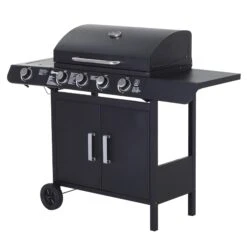 Outsunny Gasgrill Mit Räder Schwarz 125L X 51B X 100H Cm | Tischgrill Barbecue Grill Bbq Grill