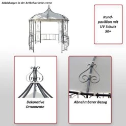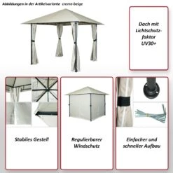 Pergola Calpe, Garten Pavillon, Stabiles 7cm-Gestell Mit Seitenwand + Moskitonetz ~ Creme 4x3m