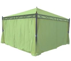 Pergola Calpe, Garten Pavillon, Stabiles 7cm-Gestell 5x3m ~ Creme Mit Seitenwand + Moskitonetz