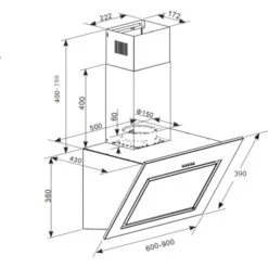 PKM Dunstabzugshaube 9039X, 303m³,LED Kopffreihaube Schwarz 60 Cm