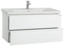 VCM 2-tlg. Waschplatz Waschtisch 100 Cm Badmöbel Set Waschbecken Grifflose Schublade Silora XL