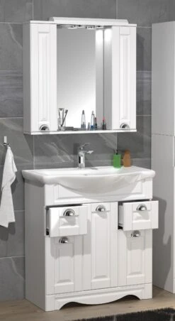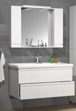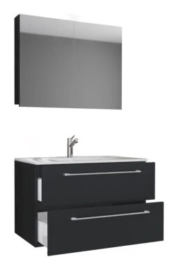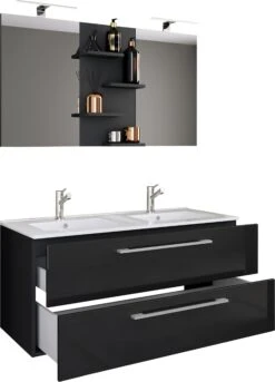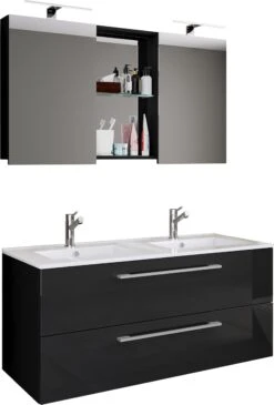 VCM 3-tlg. Waschplatz Waschtisch Badmöbel Set Waschbecken Spiegelschrank Drehtüren Lisalo M