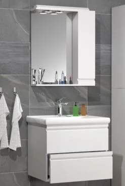 VCM 3-tlg Badmöbel Set Gäste WC Gästebad Waschplatz Waschtisch Klein Schmal Lumia Spiegel