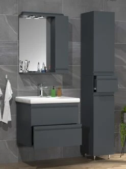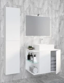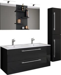 VCM 4-tlg. Waschplatz Waschtisch Badmöbel Set Waschbecken Schublade Spiegelschrank Lisalo L