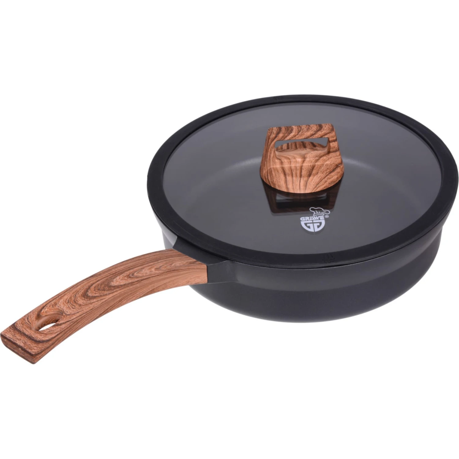 Der Kunststoffgriff in Holzoptik verleiht der Pfanne eine besonders außergewöhnliche Optik.