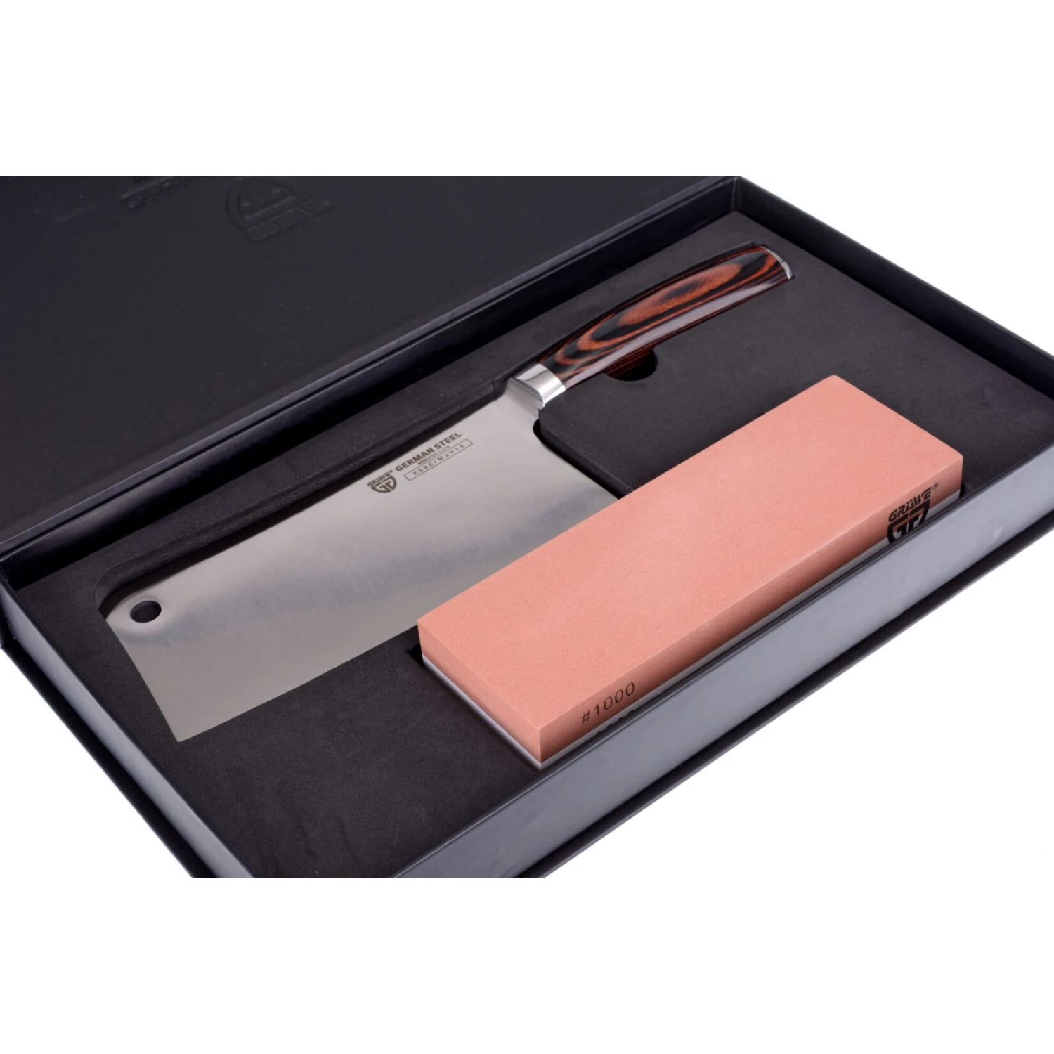 Die Schneidetechnik mit dem „Chinamesser“ erfordert eine scharfe Klinge – daher finden Sie in diesem Set einen hochwertigen Korund-Wetzstein, um bei Bedarf nachschärfen zu können.