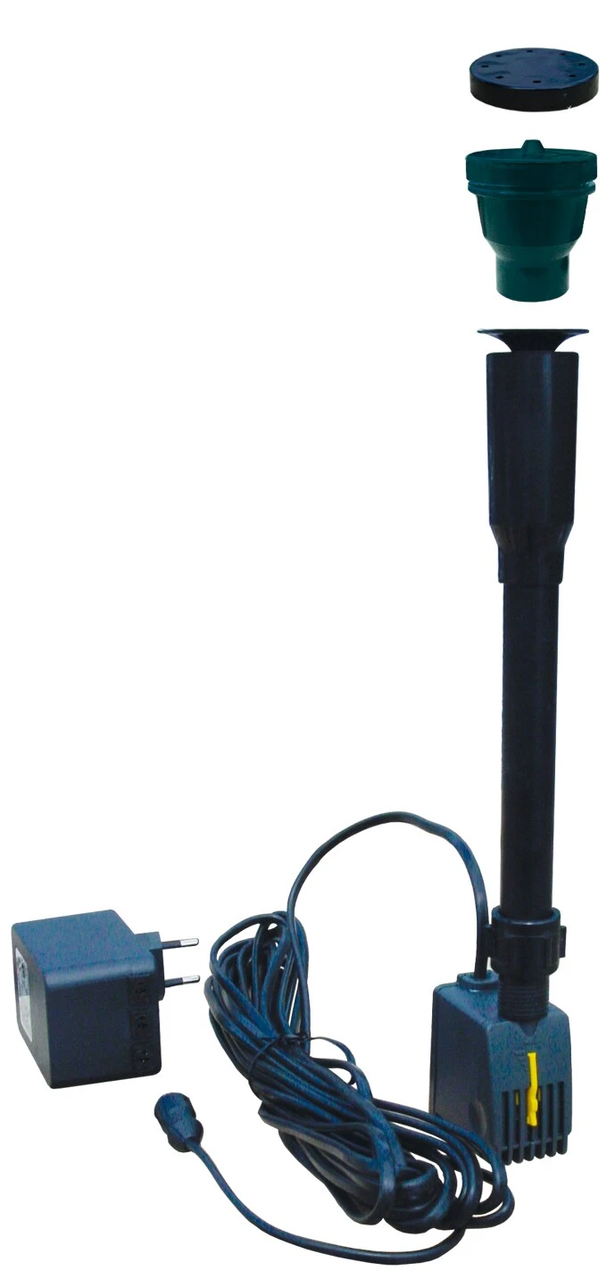 Dieses hochwertige Springbrunnenset verwandelt deinen Dekor-Regenspeicher „Hinkelstein“ im Handumdrehen in einen Quellstein. Die Springbrunnenpumpe mit zwei Ergänzungsdüsen sorgt für unterschiedliche Fontainfiguren.