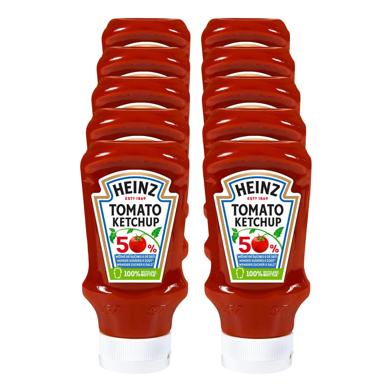 Genieße jetzt auch die leichte Version unseres Heinz Tomato Ketchup mit 50% weniger Zucker und Salz*. Eine Alternative für alle, die Zucker und Salz in Lebensmitteln reduzieren möchten. Purer Genuss mit der natürlichen Süße aus Stevia und 100% unverwechselbarem Heinz Tomaten Geschmack. *als herkömmlicher Heinz Tomato Ketchup.