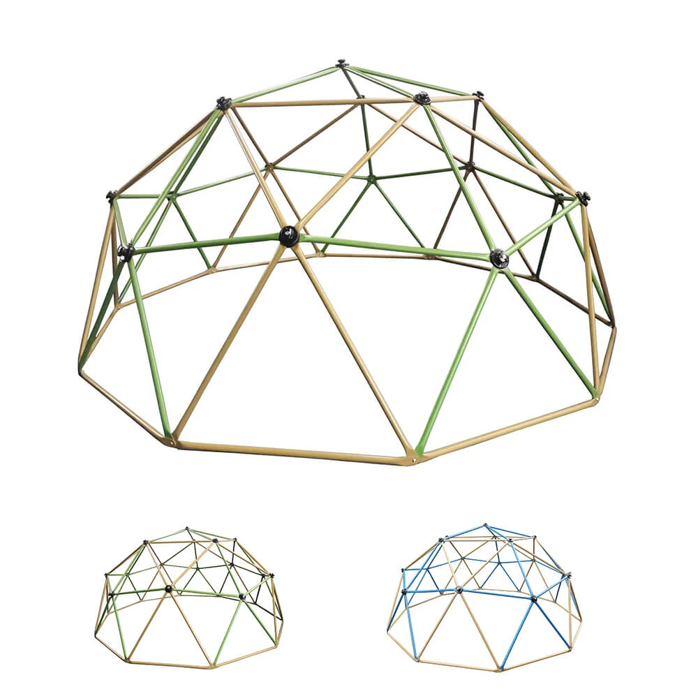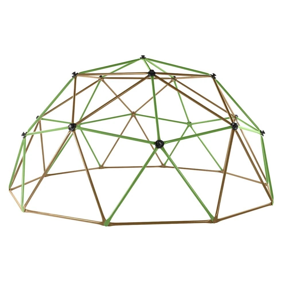 Das Klettergerüst ist aus feuerverzinktem Stahl und somit witterungsbeständig und langlebig. Aufgebaut hat es einen Durchmesser von 3 Metern und eine Höhe von 1,5 Metern, sodass mehrere Kinder gleichzeitig ein kleines Kletterabenteuer im eigenen Garten erleben können.