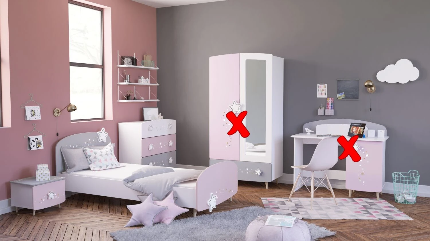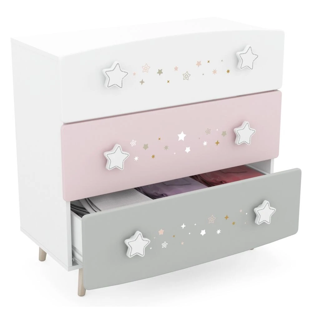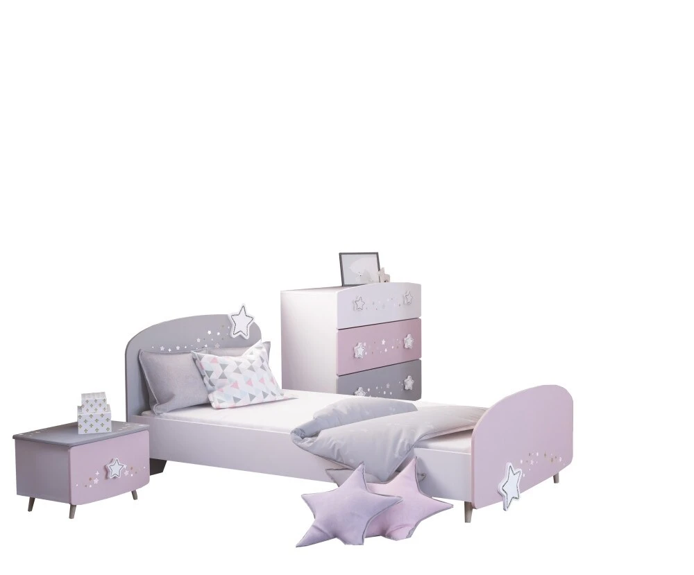 Nachts ein Schlaf(t)raum und tagsüber ein Prinzessinnen-Schloss. Das 3-teilige Kinderzimmer Sternschnuppe besteht aus einem Bett, einer Nachtkommode und optional einer Kommode oder einem 2-trg. Kleiderschrank. Diese Kindermöbel erfüllen mit ihrer schönen Optik das Kinderzimmer mit echtem Leben. Es wurde an alles, was eine Prinzessin haben muss, gedacht. Hier schlafen echte Prinzessinnen himmlisch in ihrem Zimmer ein. Die langlebigen Metallbeschläge stehen für Qualität und Sicherheit und machen die Möbel zu einem Qualitätsmöbel Made in Frankreich. Nachdem die Freundinnen nach Hause gegangen sind und neue Pläne für den nächsten Tag gemacht worden sind, wünschen wir majestätische Träume.