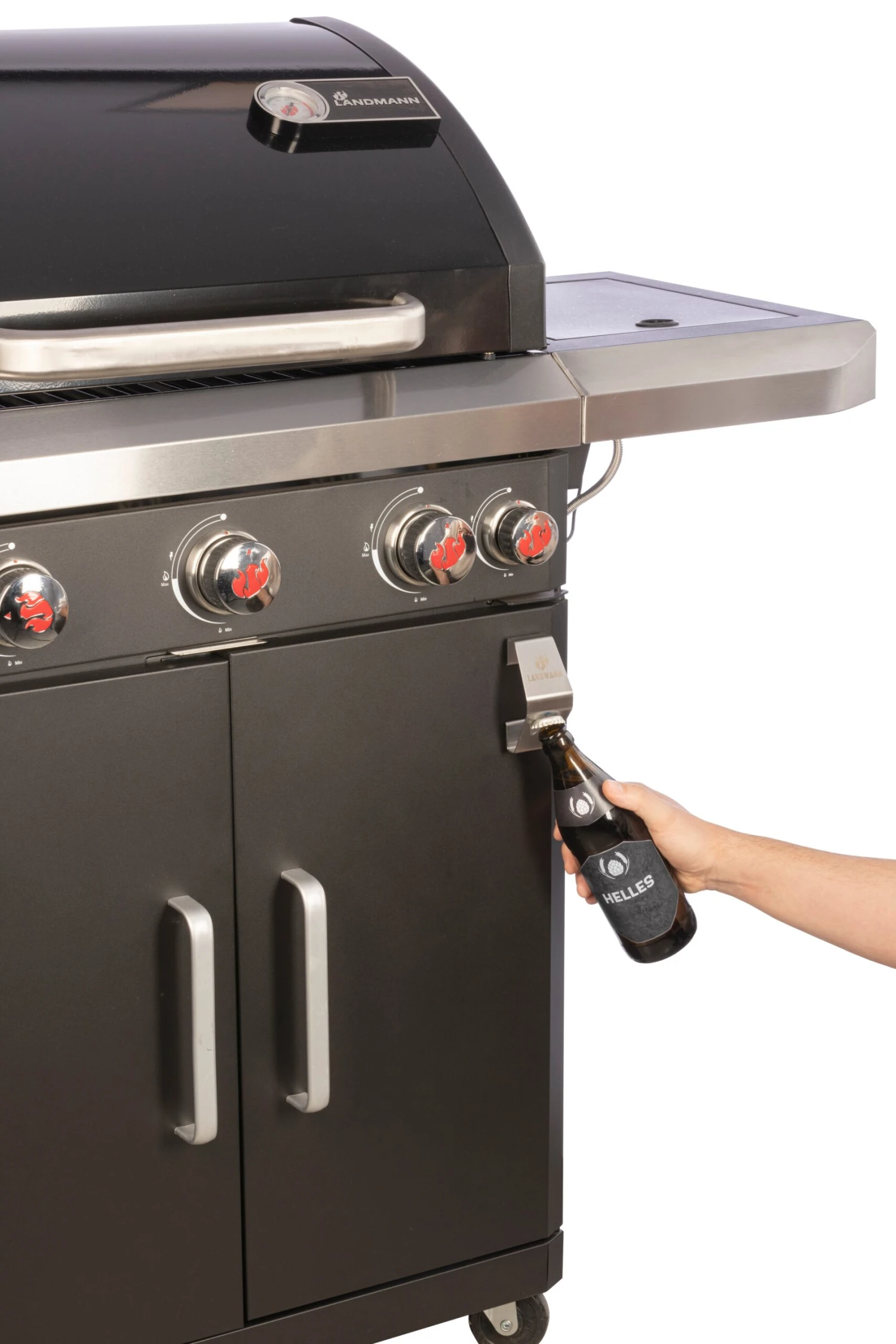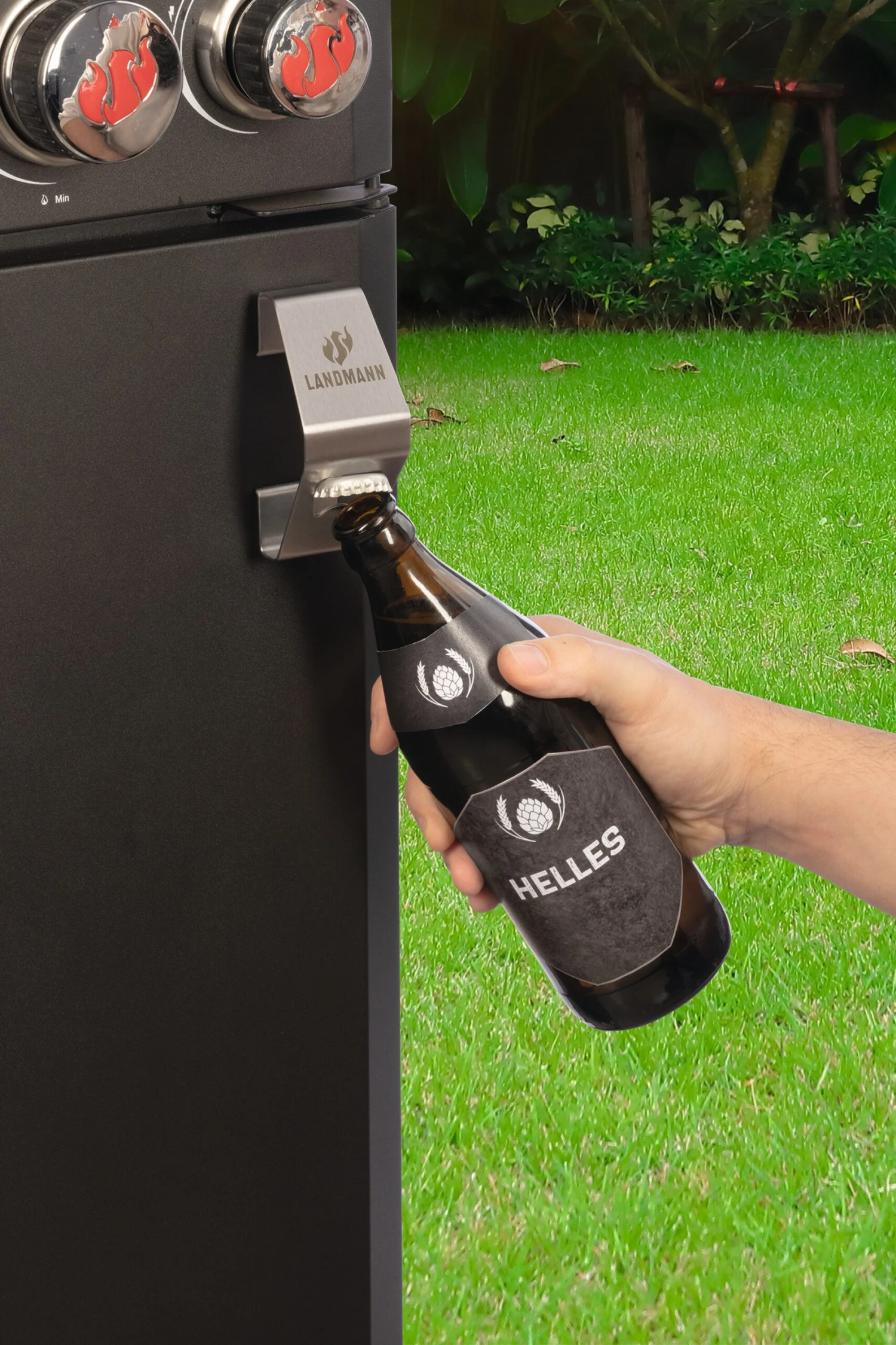 - Praktischer Flaschenöffner zur Anbringung am Grill