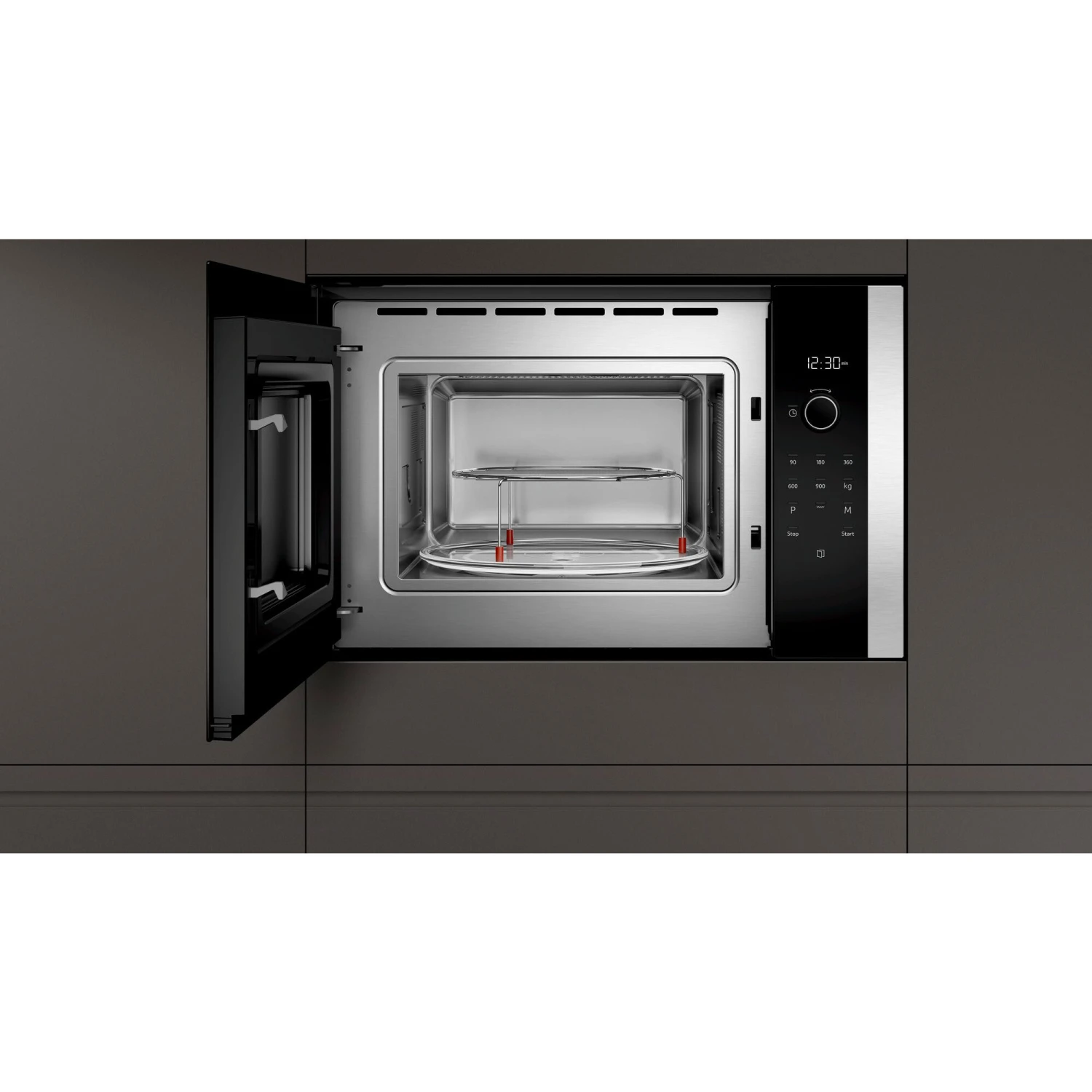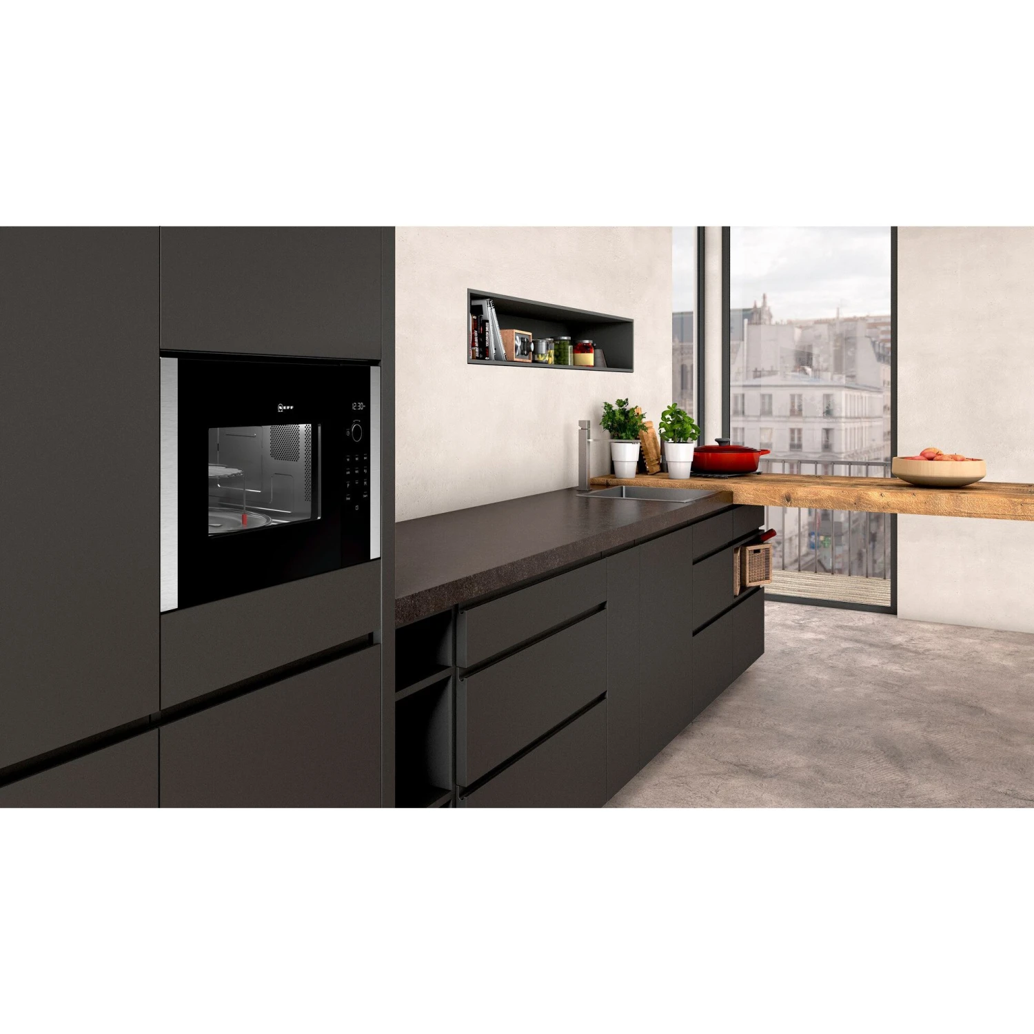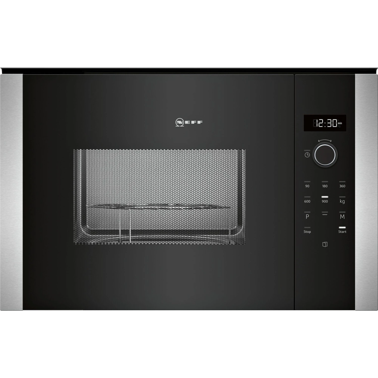 Die Einbau-Mikrowelle Neff HLAGD53N0 – HGB53 überzeugt mit 25 Litern Nutzinhalt, 900 Watt Leistung und einer zusätzlichen Grillfunktion mit 1200 Watt. Fünf Mikrowellen-Leistungsstufen sowie 8 Automatikprogramme lassen sich dank Leicht-Bedien-Konzept besonders einfach einstellen. Der integrierte Grill lässt sich mit den Mikrowellen-Leistungsstufen 90, 180 und 360 Watt kombinieren. Mit den Touch- Direktwahltasten gelangt man intuitiv zum passenden Programm. Die Automatikprogramme mit erprobten Einstellungen sorgen für optimales Gelingen. Die Memory-Funktion erlaubt es, häufige verwendete Programme abzuspeichern, um die Nutzung für den Anwender zu vereinfachen. Dank der LED-Innenbeleuchtung hat man optimales Licht, genau wo man es braucht. Die HGB53 eignet sich zum Einbau in einen 38 cm-Hochschrank. Die sich seitlich öffnende Drehtür ist ideal für den Hocheinbau.