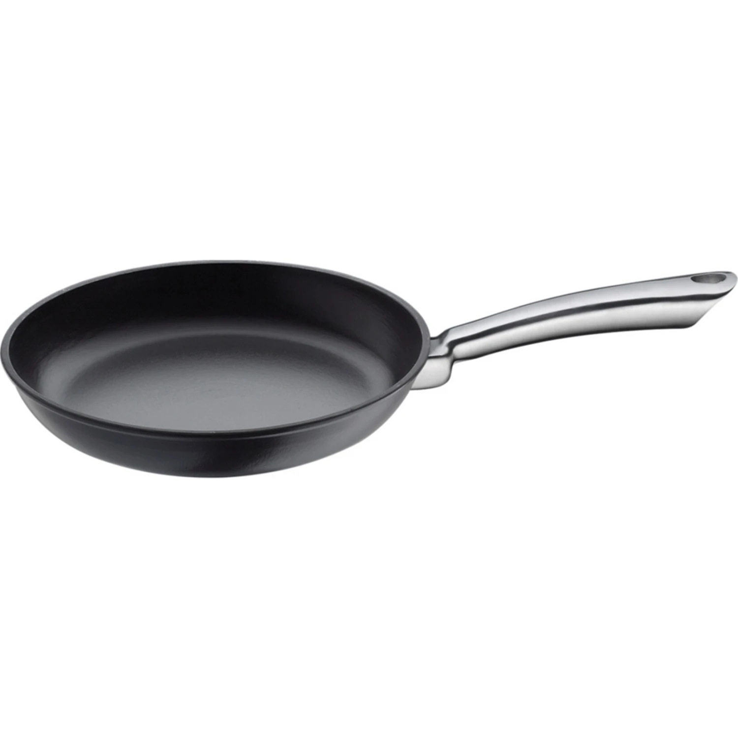 Die Pfanne ist perfekt um Gemüse oder Fleisch zu schmoren, köcheln, braten und sogar frittieren. Das Gusseisen nimmt die Wärme schnell auf und gibt Sie optimal verteilt weiter. Der Edelstahl-Griff ist hitzebeständig bis 250°C, also auch für den Backofen geeignet. Die Pfanne gibt es in verschiedenen Größen.
