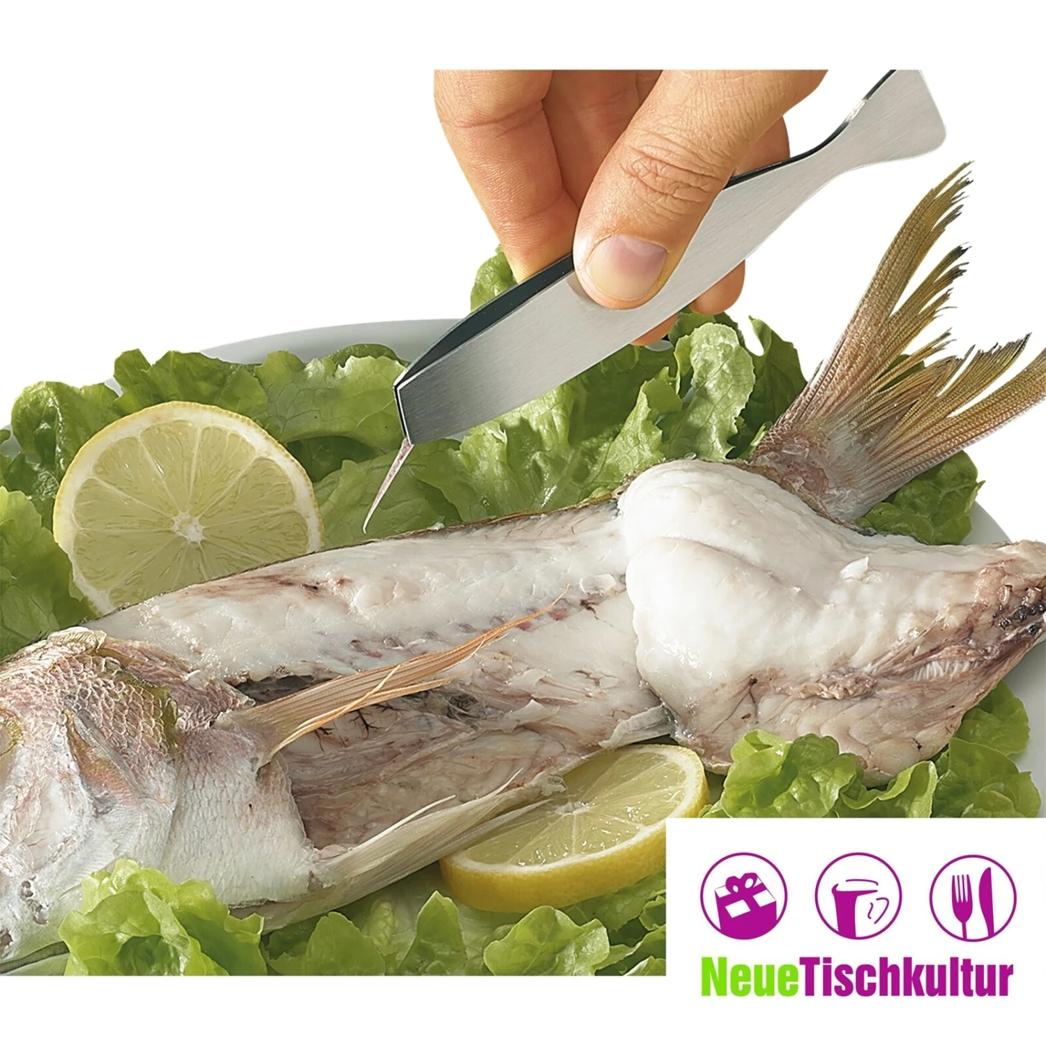 Die Pinzette greift schnell und geschickt die störenden Gräten aus dem leckeren Fisch.
