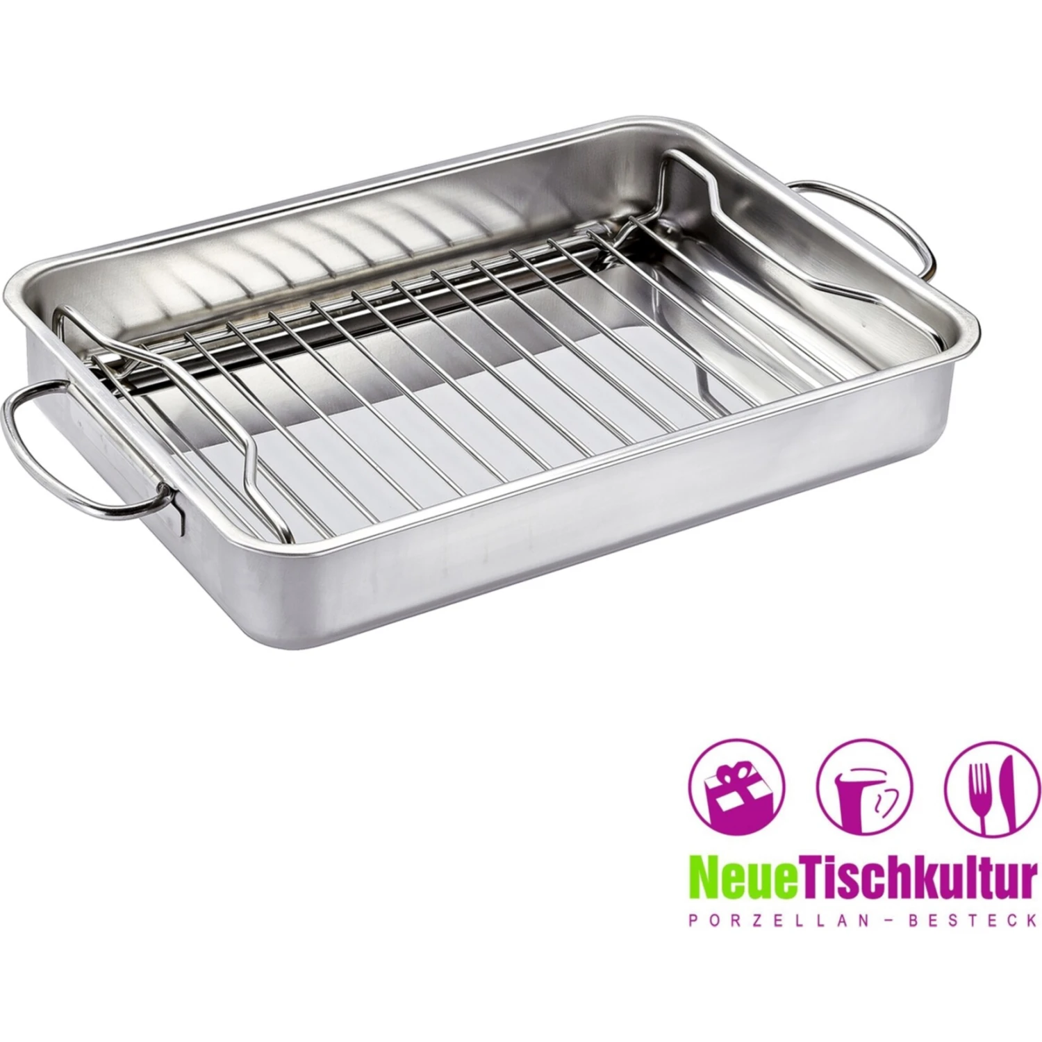 Nicht nur beim Grillen, sondern auch im Backofen oder Dampfgarer ist die Ofenschale ideal zum Braten, Schmoren, Dämpfen oder Gratinieren. Die geraden Seitenwände und die optimale Höhe sind perfekt für das Garen von Ofengerichten und Aufläufen. Für eine individuelle Abtropfhöhe kann der Gittereinsatz flexibel mit den Griffen nach oben oder unten eingesetzt werden – ideal zur fettarmen Zubereitung von Fisch, Fleisch oder Gemüse. Die klappbaren Griffe ermöglichen einen platzsparenden Gebrauch und einen leichten Transport. In verschiedenen Größen erhältlich: L/B/H 34 x 24 x 5,5 cm und 40 x 31,5 x 6,5 cm