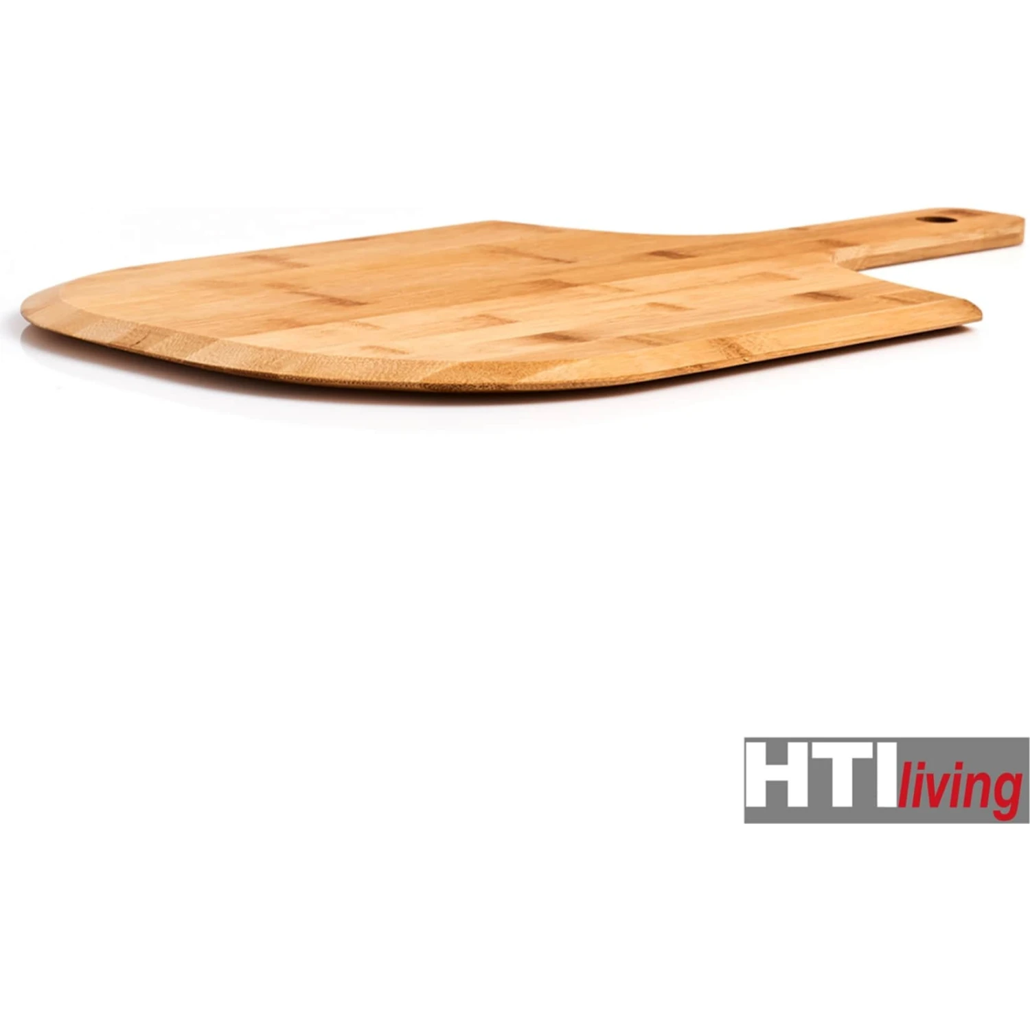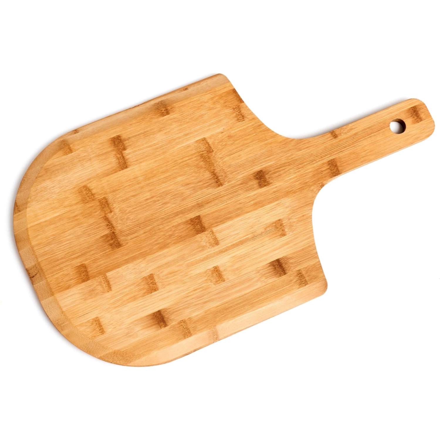 Dieser klassische Pizzateller aus hochwertigem Bambus besticht durch seine auf verschiedene Pizzen abgestimmte Form, die das Servieren um ein Vielfaches vereinfacht. Der lange Griff erleichtert dabei den Transport. Der Pizzateller besteht aus haltbarem und ökologischem Material und kann einfach mit einem Tuch und warmem Wasser gereinigt werden. Auch deine Gäste werden dieses Servierwerkzeug lieben. Maße 53,5 x 30,5 x 1,2 cm
