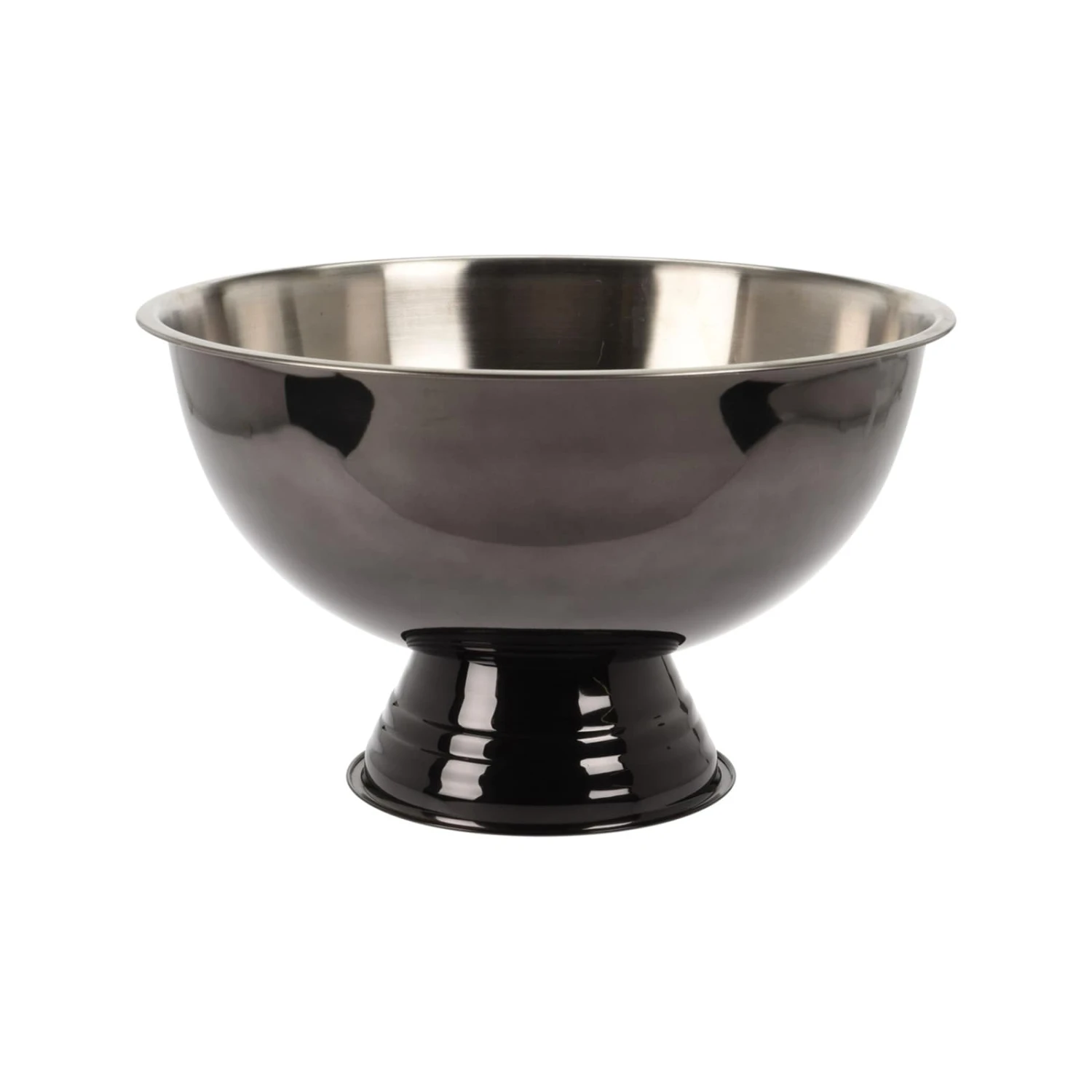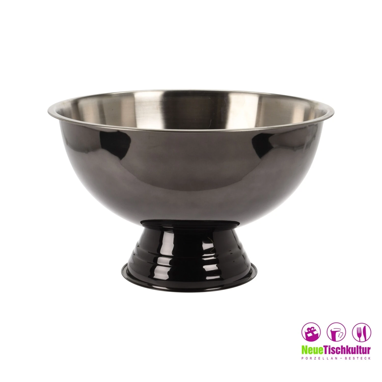 Champagnerschale aus Edelstahl, die es in zwei Farb-Varianten gibt: in Schwarz glatt und in Silber geprägt. Maße: Ø 40 cm H 24 cm