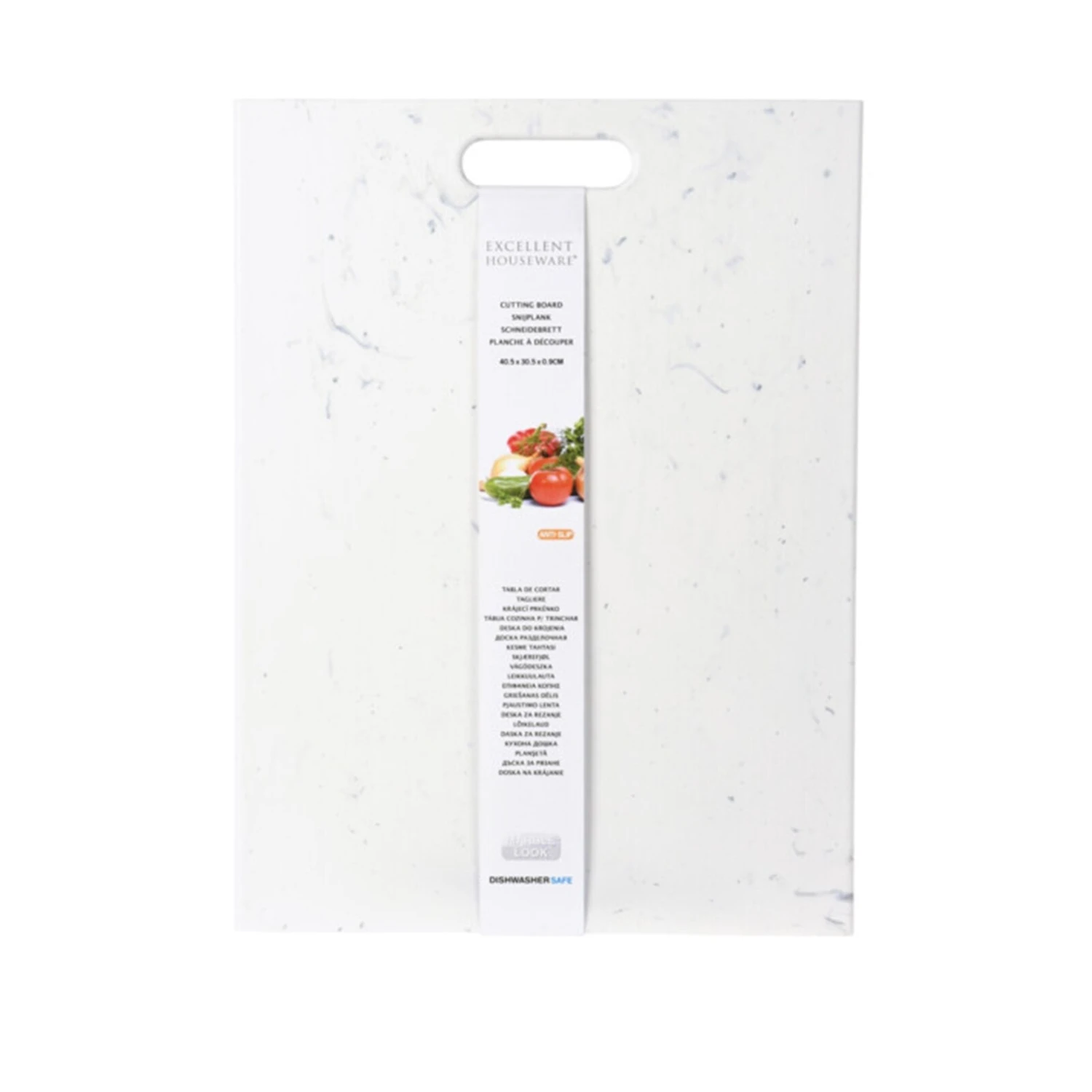Schneidebrett aus Kunststoff, weiß Unentbehrlich in jeder Küche – sowohl für alle, die oft selbst kochen, als auch für diejenigen, die Essen in der Stadt bevorzugen. Ein Schneidebrett ist eine Sache, ohne die man sich eine Küche kaum vorstellen kann. Es kann nicht nur zum Schneiden, sondern auch zum Servieren verwendet werden, daher lohnt es sich, ein Brett zu wählen, das nicht nur praktisch ist, sondern auch mit schönem Design beeindruckt. Das Schneidbrett gibt es in zwei Größen: L/B/H 32 x 24 x 0,5 cm, 40 x 30,5 x 0,6 cm