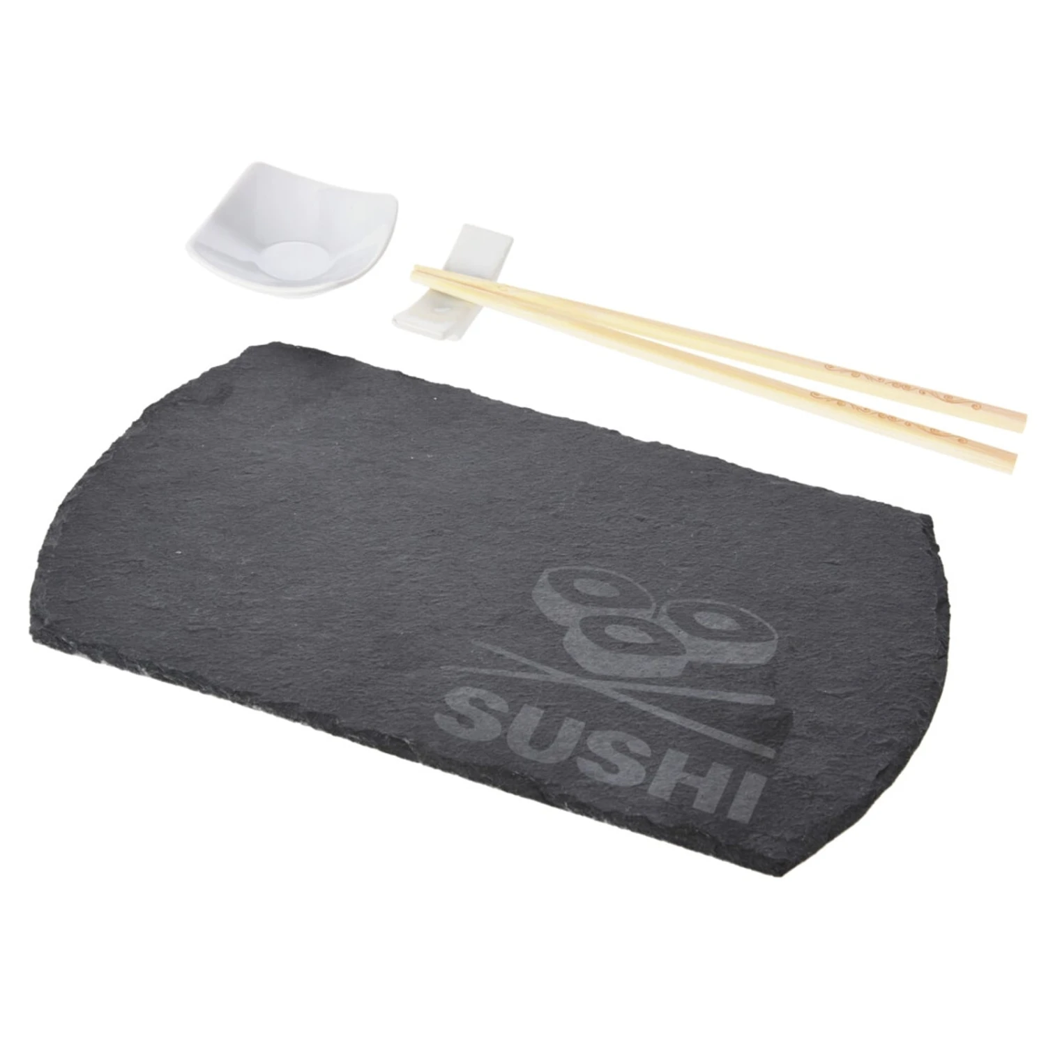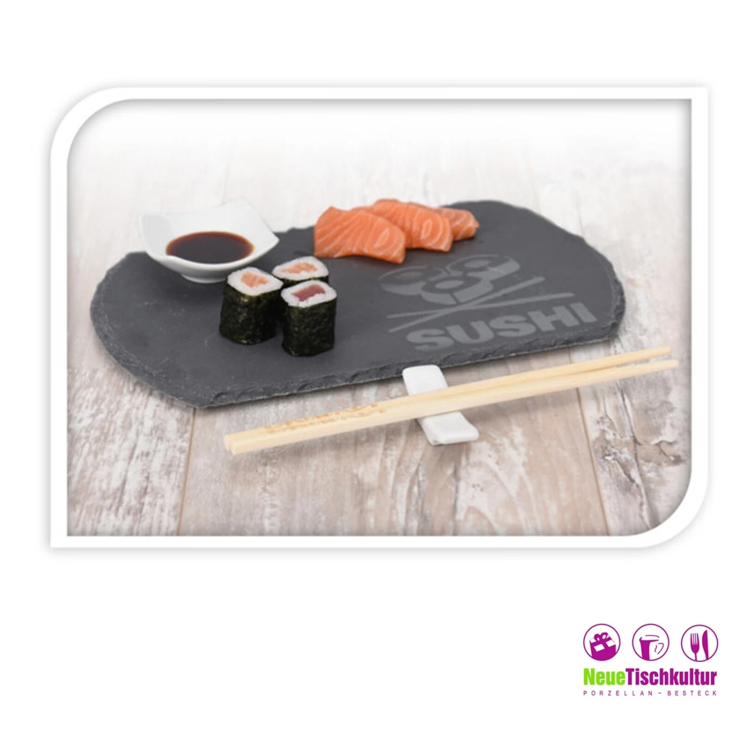 - Lieferumfang: 1 Schieferplatte, 1 Dipschale, 1 Stäbchenablage, 1 Paar Stäbchen