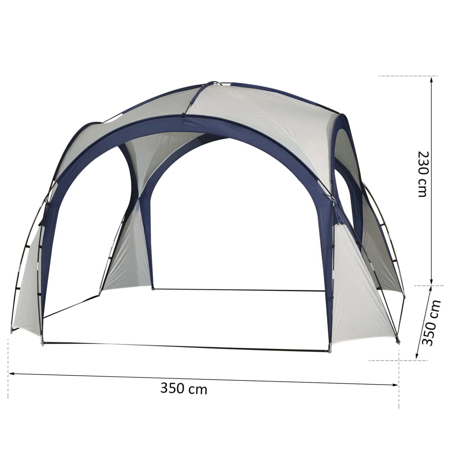 Wer an sonnigen Tagen bequem im Schatten sitzen möchte, trifft mit unserem Gartenzelt die richtige Wahl. Die offene Struktur macht den Pavillon besonders vielseitig und bietet auf 3,5 x 3,5 Metern genug Platz für Ihre Familie und Gäste. Ob auf der Terrasse, im Garten oder unterwegs im Park oder am Strand, der Pavillon bietet Ihnen Schutz vor der Sonne und leichtem Regen. Die weiße Bespannung ist mit einer wasserabweisenden Beschichtung versehen. Für Stabilität sorgt das wertige Gestell aus Glasfaser. An dem Haken an der Decke können Sie eine Lampe anbringen, damit das gemütliche Beisammensein auch nach Sonnenuntergang weitergehen kann. Jetzt kann der Sommer kommen!