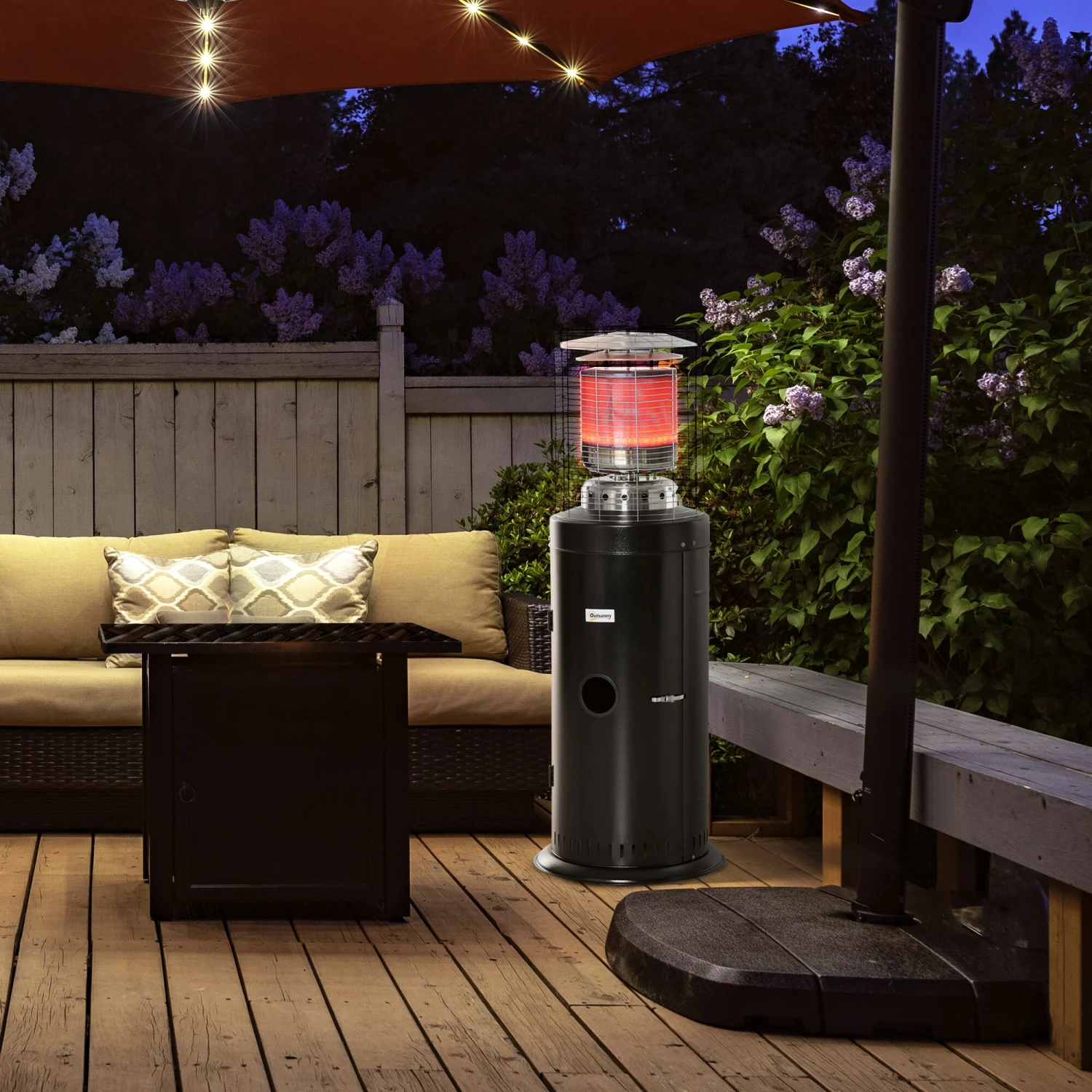 Dieser frei stehende Terrassenheizer von Outsunny wird aus massivem Metall und Edelstahl hergestellt. Der Heizstrahler wird kann mit Propan, Butan oder Flüssiggas betrieben und kann mit dem Drehknopf zwischen hoher Temperatur und niedriger Temperatur eingestellt werden, sodass Sie selbst bestimmen können, wie warm Sie es haben möchten. Zwei Räder sorgen für eine einfache Bewegung, ein Kippschutz und ein automatische Sicherheitsabschaltung für mehr Sicherheit.