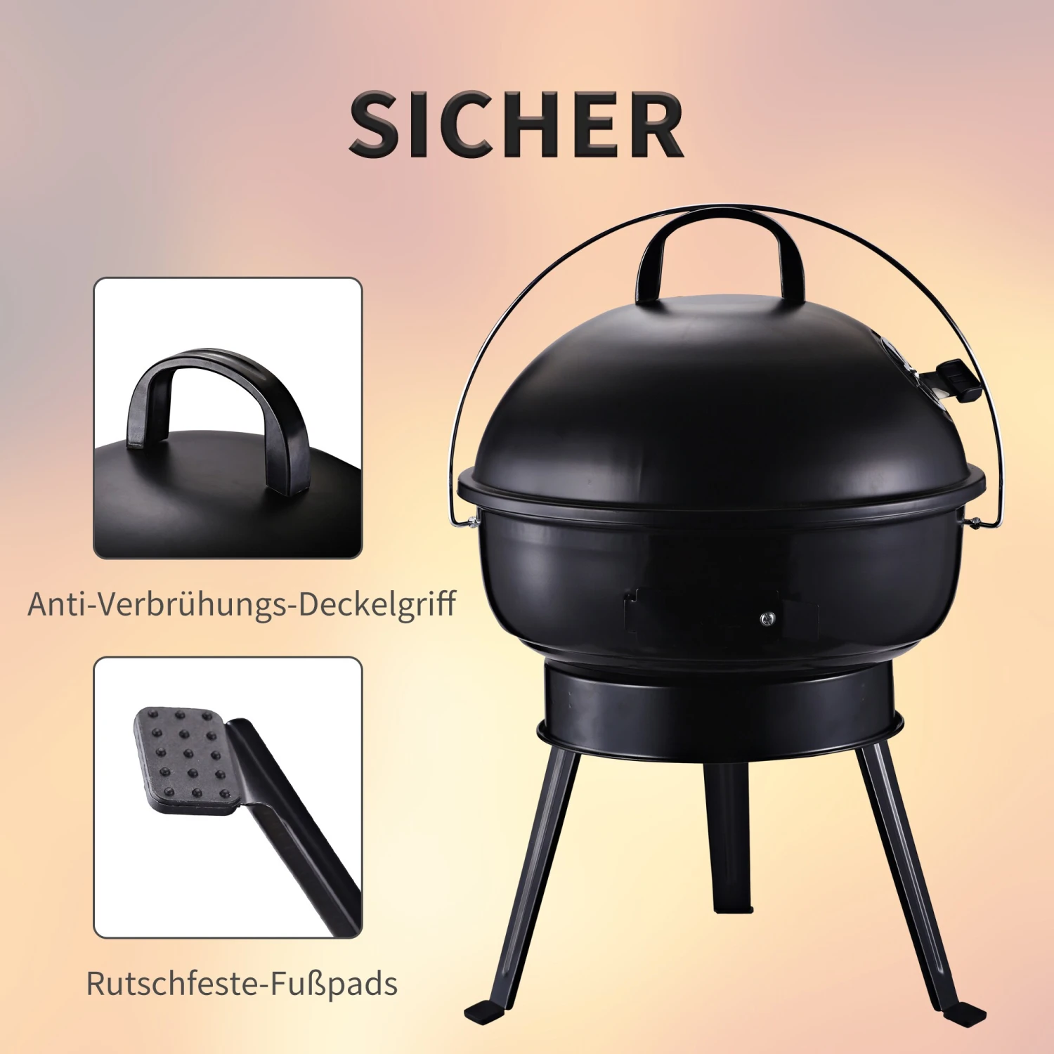 Mit diesem Grill können Sie bei Ihren Outdoor-Abenteuern köstliche BBQ zubereiten. Im Inneren befindet sich ein verchromter Grillrost mit einem Durchmesser von 34,6 cm. Er ist mit drei Belüftungsöffnungen am Deckel ausgestattet, die es Ihnen ermöglichen, die Flammenintensität bei geschlossenem Deckel zu regulieren, sowie mit einem Schutzgriff, damit Sie sich nicht verbrühen.