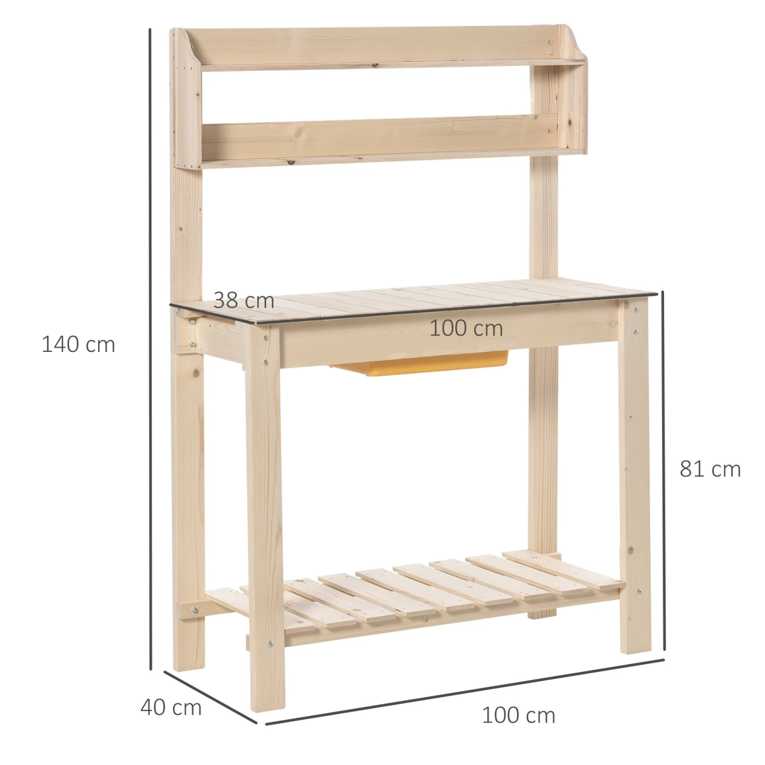 Mit diesem Pflanztisch macht das Gärtnern Spaß! Dank seiner optimalen Arbeitshöhe entfällt ein anstrengendes Bücken. Die 3 Regale und die Befestigungshaken sorgen für viel Ordnung und Übersichtlichkeit. Gartenwerkzeuge, Zubehör und Pflanzen können ganz einfach in den Regalen untergebracht werden. Die Tischplatte ist ausziehbar und bietet daher viel Ablagefläche. Die praktische Trockenspüle verschwindet, nach Gebrauch, unsichtbar unter der Tischplatte. Dieser Pflanztisch findet Platz auf kleinesten Raum und ist daher auch für Balkone, Terrassen und Veranden geeignet.