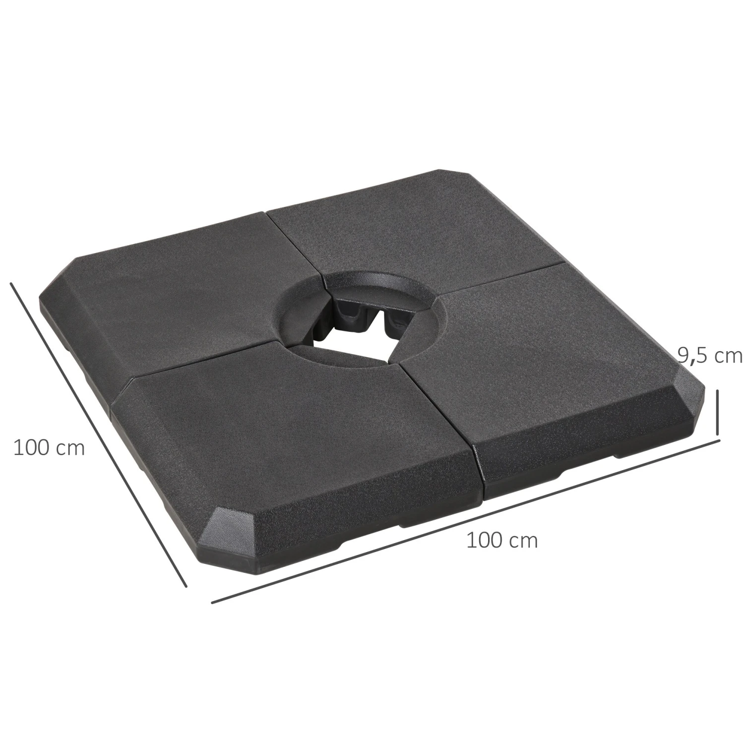 Sorgen Sie sich nicht mehr um die Sicherheit Ihrer Schirme. Unsere Halteplatten für Schirme sind aus robustem HDPE Kunststoff und mit einem wetter- und UV-resistentem Anstrich versehen. Jedes Teil lässt sich einfach mit 20kg Wasser oder 30 kg Sand befüllen und verhindert damit das Wegfliegen Ihrer Schirme bei starkem Wind. Ideal für alle Außenbereiche und die meisten Schirme.