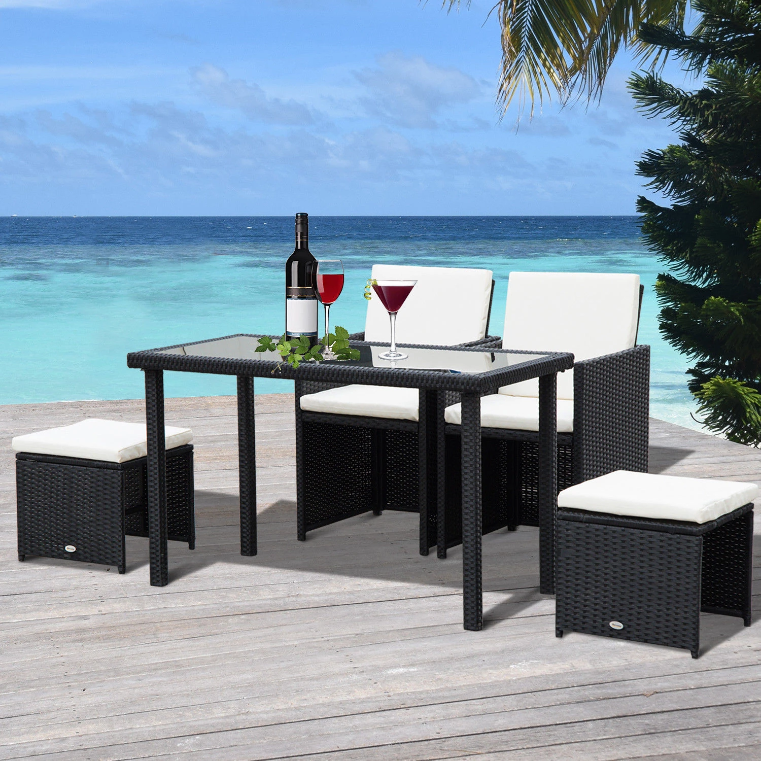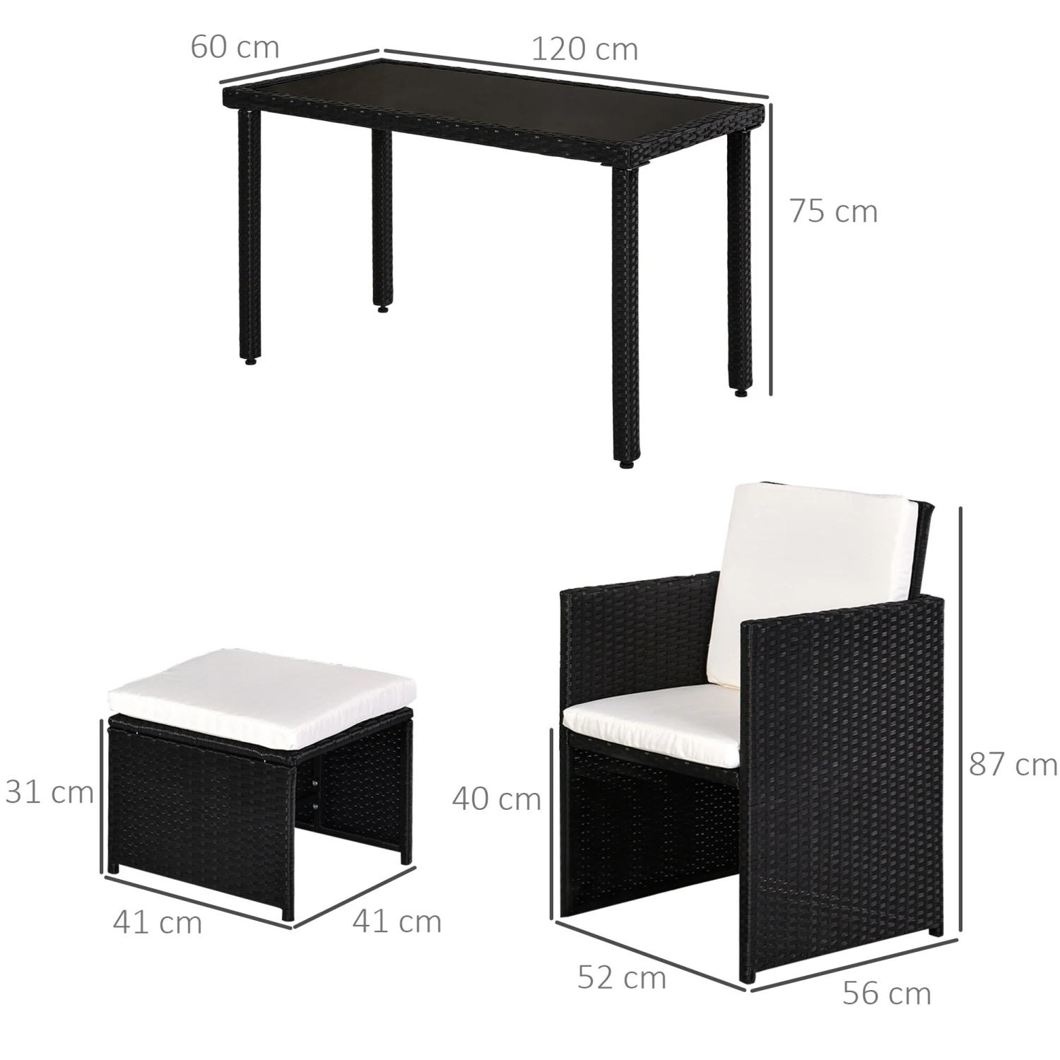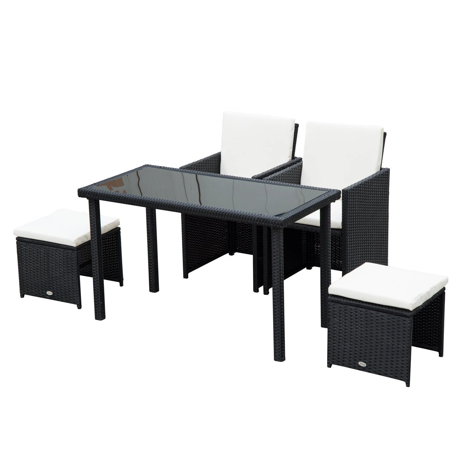- Lieferumfang: 1 x Tisch, 2 x Stuhl, 2 x Hocker, 6 x Kissen, Montagezubehör